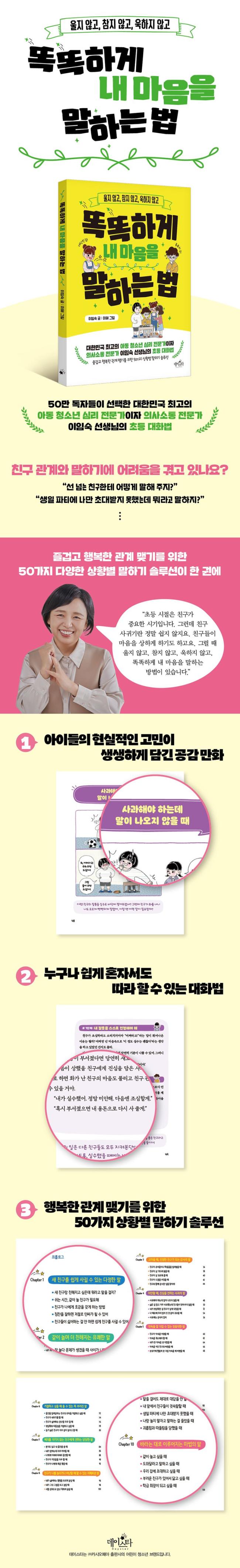 ÃʵîÇб³ ½Ã±âºÎÅÍ ¾ÆÀ̵éÀº º»°ÝÀûÀÎ »çÈ¸È °úÁ¤À» °Þ½À´Ï´Ù. Çб³¿¡ °¡¼ ¼±»ý´Ô¿¡°Ô ¼ö¾÷À» µè°í Ä£±¸µé°ú ¾î¿ï¸®¸ç ´Ù¾çÇÑ »çȸÀû ±ÔÄ¢°ú ÇൿÀ» ¹è¿ì°Ô µÇÁö¿ä. ƯÈ÷ Ä£±¸¿ÍÀÇ °ü°è´Â ¾ÆÀ̵鿡°Ô ¾ÆÁÖ ¼ÒÁßÇÏ°í ¶Ç Áß¿äÇÑ Àڱذú ¹è¿òÀÌ µË´Ï´Ù. ±×·¯³ª ž¼ óÀ½ °Þ´Â ÀÌ »õ·Î¿î °ü°è°¡ ´©±¸¿¡°Ô³ª ½¬¿î °ÍÀº ¾Æ´Ï¾î¼ ¾ÆÀ̵éÀº ÀÚÁÖ °í¹ÎÇÏ°í ´çȲÇϰí ÁÂÀýÇϰï ÇÏÁö¿ä. ÀÌ Ã¥Àº ¾ÆÀ̵éÀÌ Ä£±¸¸¦ »ç±Í¸ç °Þ´Â ´Ù¾çÇÑ »óȲÀ» ¼Ò°³ÇÏ¸ç ±×¶§±×¶§ ÇÊ¿äÇÑ ÀûÀýÇÑ ¸»°ú ÇൿµéÀ» ¾Ë·Á ÁÝ´Ï´Ù. »õ Ä£±¸¸¦ ½±°Ô »ç±Ð ¼ö ÀÖ´Â ´ÙÁ¤ÇÑ ¸», °°ÀÌ ³î¸ç ´õ Ä£ÇØÁö´Â À¯ÄèÇÑ ¸», °í¸¶¿ï ¶§, ÁøÁ¤ÇÑ Ä£±¸°¡ µÇ´Â °¨»çÀÇ ¸», ¹Ì¾ÈÇÒ ¶§, Áø½ÉÀ» ÀüÇÏ´Â »ç°úÀÇ ¸», ¾à¼ÓÀ» Àß Áöų ¼ö ÀÖ´Â ¹ÏÀ½Á÷ÇÑ ¸», °ÅÀýÇÏ°í ½ÍÀ» ¶§ ¾µ ¼ö ÀÖ´Â ¶È ºÎ·¯Áø ¸», ¿¹ÀǸ¦ ÁöŰÁö ¾Ê´Â Ä£±¸¿¡°Ô ÀüÇÏ´Â ´ç´çÇÑ ¸», Ä£±¸°¡ ³ª¸¦ ³î¸®°Å³ª ºñ³ÇÒ ¶§ ÇÒ ¼ö ÀÖ´Â ÁöÇý·Î¿î ¸», Ä£±¸°¡ ³ª¸¦ µûµ¹¸± ¶§ ÇÒ ¼ö ÀÖ´Â ½½±â·Î¿î ¸», ¿øÇÏ´Â ´ë·Î ÀÌ·ç¾îÁö´Â ¸¶¹ýÀÇ ¸»ÀÌ ´ã°Ü ÀÖÁö¿ä. ´ëÇѹα¹ ÃÖ°íÀÇ ¾Æµ¿ û¼Ò³â ½É¸® Àü¹®°¡ÀÌÀÚ ÀÇ»ç¼ÒÅë Àü¹®°¡ÀÎ ÀÌÀÓ¼÷ ¼±»ý´ÔÀÇ Á¶¾ðÀ» µû¶ó Çϳª¾¿ µû¶ó ÇØ º¸´Ù º¸¸é ¾î´À»õ ¾ÆÀ̵éÀº Áñ°Ì°í ÇູÇÏ°Ô Ä£±¸µé°ú °ü°è ¸ÎÀ¸¸ç ÀÚ¶ó³¯ ¼ö ÀÖÀ» °ÍÀÔ´Ï´Ù.