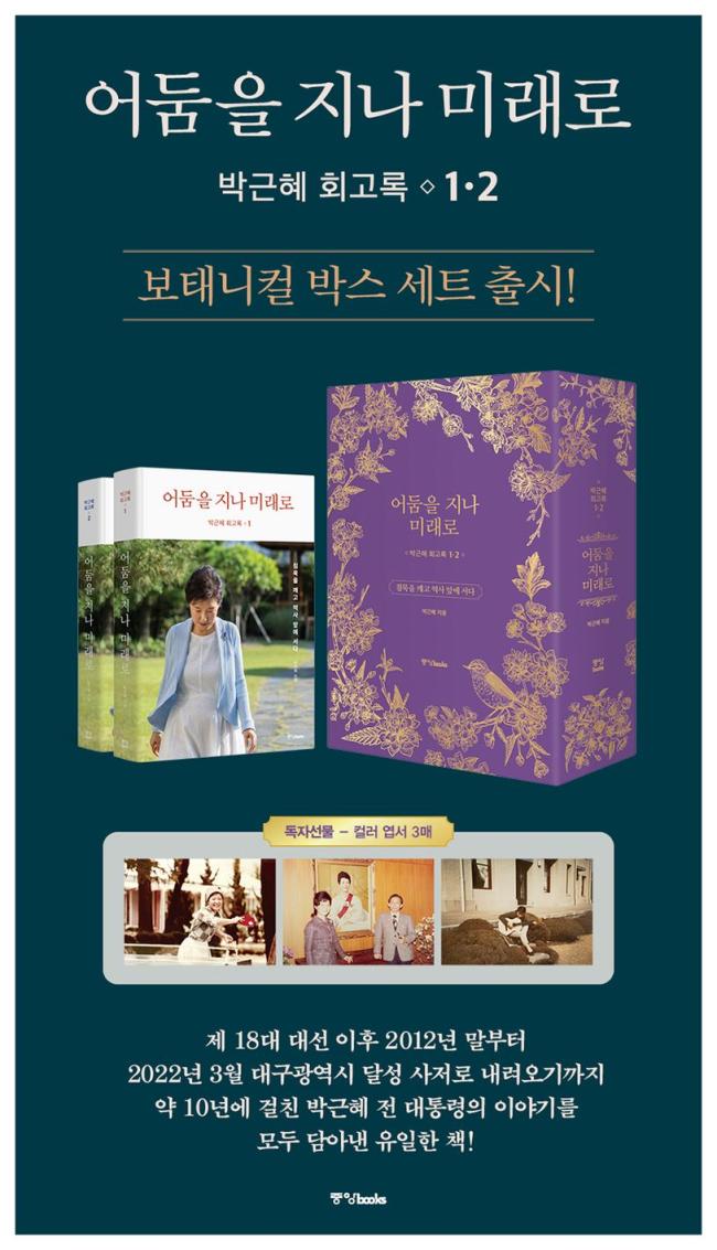 ¹Ú±ÙÇý Àü ´ëÅë·ÉÀÇ Á¤Ä¡ ÀÏ´ë±â¸¦ ´ãÀº µµ¼, ¡¶¹Ú±ÙÇý ȸ°í·Ï: ¾îµÒÀ» Áö³ª ¹Ì·¡·Î 12¡·ÀÇ ¹Ú½º ¼¼Æ®°¡ Ãâ°£µÆ´Ù. ¹Ú±ÙÇý Àü ´ëÅë·ÉÀÌ Æò¼Ò »ç¶ûÇÏ´Â ÀÚ¿¬ÀÇ ´À³¦À» °¡µæ ´ãÀº º¸Å´ÏÄà ¹®¾çÀ» Ȱ¿ëÇÑ Æ¯º°ÇÑ µðÀÚÀÎÀ¸·Î Á¦ÀÛµÆÀ¸¸ç, º» ¹Ú½º ¼¼Æ®¸¦ ±¸ÀÔÇÏ´Â µ¶ÀÚµéÀº ¹Ú±ÙÇý Àü ´ëÅë·ÉÀÇ ¸ð½ÀÀÌ ´ã±ä 3ÀåÀÇ Æ¯º°ÇÑ Ä÷¯ »çÁø¿±¼µµ ÇÔ²² ¸¸³ªº¼ ¼ö ÀÖ´Ù.