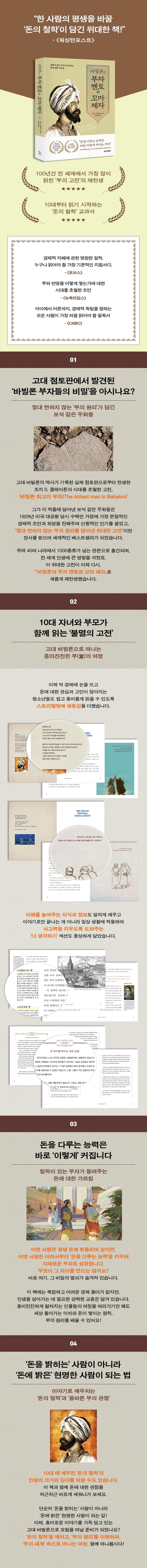 Àü ¼¼°è¿¡¼ °¡Àå ¸¹ÀÌ ÀÐÇûÀ¸¸ç °¡Àå ¿À·§µ¿¾È »ç¶û¹ÞÀº °íÀü, ¡®¹Ùºô·Ð ÃÖ°íÀÇ ºÎÀÚ(The richest man in Babylon)¡¯´Â ±â¾÷°¡ÀÌÀÚ ¹®Çа¡, Á¶Áö S. Ŭ·¹ÀÌÆ°ÀÌ ½ÇÁ¦·Î ¹ß°ßµÈ °í´ë Á¡ÅäÆÇ¿¡¼ ¿µ°¨À» ¹Þ¾Æ ÁýÇÊÇÑ Ã¥À¸·Î, °í´ë µµ½Ã ¹Ùºô·ÐÀ» ¹è°æÀ¸·Î ¡®µ·À» ¸ðÀ¸°í, Áö۰í, ºÒ¸®´Â ÁöÇý¡¯¸¦ ¾Ë·ÁÁÖ´Â º¸¼® °°Àº ¿ìȵéÀ» ´ã°í ÀÖ´Ù. 1929³â ¹Ì±¹ ´ë°øÈ² ´ç½Ã ¼ö¹é¸¸ °¡Á¤¿¡ °¡Àå º»ÁúÀûÀÎ °æÁ¦Àû Á¶¾ð°ú Èñ¸ÁÀ» ÀüÇØÁÖ¸ç ¼±Ç³ÀûÀÎ Àα⸦ ¶á ÀÌ ÀÛǰÀº ¡°Àý´ë º¯ÇÏÁö ¾Ê´Â ºÎÀÇ ¿ø¸®¸¦ ´ã¾Æ³½ À§´ëÇÑ °íÀü¡±À̶õ Âù»ç¸¦ ¹ÞÀ¸¸ç ¼¼°èÀûÀÎ º£½ºÆ®¼¿·¯°¡ µÇ¾ú°í, ¹«·Á 40¿© °³ ³ª¶ó¿¡¼ 1000Á¾·ù°¡ ³Ñ´Â ÆÇº»À¸·Î Ãâ°£µÇ¸ç ¼ö¾ï ¸í¿¡ À̸£´Â »ç¶÷µéÀÇ Àλý¿¡ Å« ¿µÇâÀ» ³¢ÃÆ´Ù.
