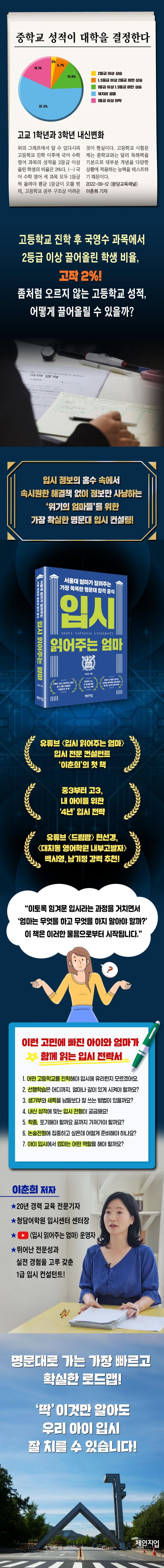 ÀúÀÚ´Â ÀÔ½ÃÀÇ ±âÃʰ¡ µÇ´Â ÃʵîÇб³ºÎÅÍ ½ÉÈ °úÁ¤À̶ó ÇÒ ¼ö ÀÖ´Â °íµîÇб³±îÁö 12³â Çб³»ýȰ Àü¹ÝÀ» ´Ù·é´Ù. ÀÌ Ã¥À» Àд µ¶ÀÚµéÀº ¡®°øºÎ ÀßÇÏ´Â ¹ý¡¯ºÎÅÍ ¡®´ëÇÐ Àß °¡´Â Àü·«ÀûÀÎ ¹æ¹ý¡¯±îÁö, °øºÎ Àü¹Ý¿¡ ´ëÇÑ Á¤º¸¿Í Áö½ÄÀ» ¾òÀ» ¼ö ÀÖ´Ù. ÀԽÿ¡ ´ëÇÑ Á¤º¸°¡ ¾ø¾î °í¹ÎÀÏ ¶§, Á¤º¸´Â ¸¹Áö¸¸ ¾î¶»°Ô Ȱ¿ëÇØ¾ß ÇÒÁö ¸ð¸¦ ¶§, ±æ°í ±ä ÀÔ½ÃÀÇ ÅͳÎÀ» ¾ÆÀÌ¿Í Àß ÇìÃijª°¡°í ½ÍÀ» ¶§, ÀÌ Ã¥À» ÆîÃĺ¸ÀÚ. ¼±º°µÈ Á¤º¸¿Í ÷¿¹ÇÑ Á¶¾ðÀº ÀԽûý Àڳฦ µÐ ¸¹Àº ÇÐºÎ¸ð¿¡°Ô ÀûÁö ¾ÊÀº µµ¿òÀÌ µÉ °ÍÀÌ´Ù.
