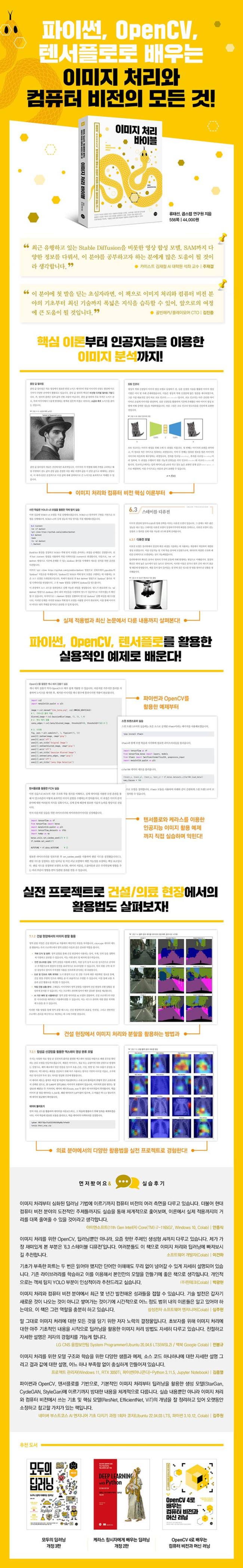 °¢ ÀåÀº ÀÌ·Ð ¼³¸í°ú ÇÔ²² ½ÇÁ¦ »ç·Ê ¿¬±¸ ¹× ÆÄÀ̽ã, OpenCV, ÅÙ¼Ç÷θ¦ Ȱ¿ëÇÑ ½Ç¿ëÀûÀÎ ÄÚµå·Î ÇнÀÇÒ ¼ö ÀÖµµ·Ï ±¸¼ºÇß´Ù. ¶ÇÇÑ, ¸¶Áö¸·¿¡´Â °Ç¼³ ÇöÀå°ú ÀÇ·á ºÐ¾ß¿¡¼ ¾î¶»°Ô À̹ÌÁö 󸮸¦ Ȱ¿ëÇϰí ÀÖ´ÂÁö, ½ÇÀü ÇÁ·ÎÁ§Æ®·Î »ìÆìº¼ ¼ö ÀÖ´Ù. À̹ÌÁö ó¸®¿Í ÄÄÇ»ÅÍ ºñÀüÀÇ ±âÃʺÎÅÍ Ãֽбâ¼ú±îÁö Æø³ÐÀº Áö½ÄÀ» ÇнÀÇϰíÀÚ ÇÏ´Â ºÐµé²² ÃßõÇÑ´Ù.