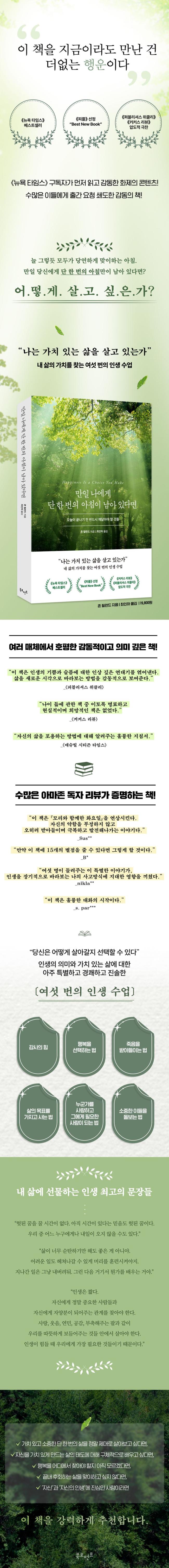 ½Ã°£ÀÌ ³²¾Æ ÀÖ´Â ÇÑ ¿ì¸®´Â ¸ðµÎ Àλý¿¡¼ ±âÀû °°Àº ½Ã°£À» ½º½º·Î ¸¸µé¾î³¾ ¼ö ÀÖ°í, ¹«¾ùÀÌ ³» »îÀ» °¡Ä¡ ÀÖ°Ô ¸¸µå´ÂÁö ¿À´ÃÀÌ °¡±â Àü ¹Ýµå½Ã »ý°¢ÇغÁ¾ß ÇÑ´Ù´Â ¸Þ½ÃÁö¸¦ ÀüÇÏ´Â ÀÌ Ã¥Àº, Á¸Àç °¡Ä¡¿Í »îÀÇ ¸ñÀûÀ» ÀØ°í »ì¾Æ°¡´Â À̵鿡°Ô µû¶æÇÏ°íµµ Çö¸íÇÑ ³ªÄ§¹ÝÀÌ µÇ¾îÁØ´Ù. ÀÚ½ÅÀÇ °¡Ä¡¸¦ ³ôÀÌ´Â »îÀÇ Åµµ¿¡ ´ëÇØ ¹è¿ì°í ½ÍÀº »ç¶÷, ÇູÀ» ¾îµð¿¡¼ ã¾Æ¾ß ÇÒÁö ¾ÆÁ÷ ¸ð¸£°Ú´Â »ç¶÷, ¼ÒÁßÇÑ ´Ü ÇÑ ¹øÀÇ »îÀ» Á¤¸» Á¦´ë·Î »ì¾Æº¸°í ½ÍÀº »ç¶÷, ÇØ°¡ ±â¿ï ¹«·Æ ³¡³» ÈÄȸÇÏ´Â ÇϷ縦 ¸ÂÀÌÇÏ°í ½ÍÁö ¾ÊÀº À̵鿡°Ô ÀÌ Ã¥À» °·ÂÈ÷ ±ÇÇÑ´Ù.