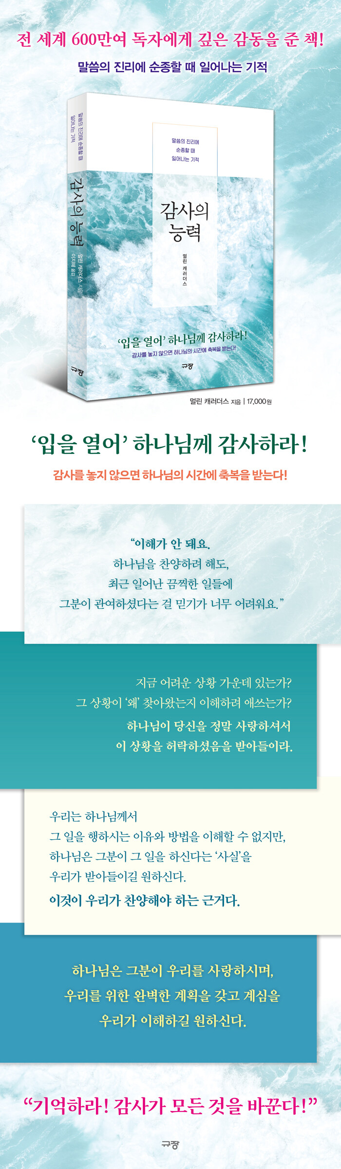 ÀÌ Ã¥ÀÇ ÀúÀÚÀÎ ¸Ö¸° ij·¯´õ½º´Â ±º º¹¹« Áß Ä¡±â ¾î¸° Å»¿µÀ» °¨ÇàÇÏ¿© °¨¿Á¿¡±îÁö °¬´Ù°¡ ±ØÀûÀ¸·Î Çϳª´ÔÀ» ¸¸³ª ±ºÁ¾Àå±³·Î¼ Çϳª´Ô°ú ¿ªµ¿ÀûÀÎ ¸ðÇèÀ» ÇÏ°Ô µÈ´Ù. ¡º°¨»çÀÇ ´É·Â¡»Àº ¡°¸ðµç °ÍÀÌ ÇÕ·ÂÇÏ¿© ¼±À» ÀÌ·é´Ù¡±¶ó´Â ¼º°æÀÇ Áø¸®¸¦ ¿ì¸® »î¿¡ Àû¿ëÇßÀ» ¶§, ÀϾ ¼ö ÀÖ´Â ±âÀûÀ» Çѵ¥ ¸ðÀº °ÍÀÌ´Ù. °¨»ç¿¡ ´ëÇÑ ¼ö¸¹Àº ¼º°æÀÇ ¿ø¸®°¡ ¿Ö, ±×¸®°í ¾î¶»°Ô ¿ì¸®ÀÇ ÀÏ»ó °¡¿îµ¥ ¿ª»çÇÏ´ÂÁö¸¦ ´Ü¼øÇÏ°í ¸í·áÇÏ¸ç ¼¼¹ÐÇÏ°Ô ¼³¸íÇϰí ÀÖ´Ù.
