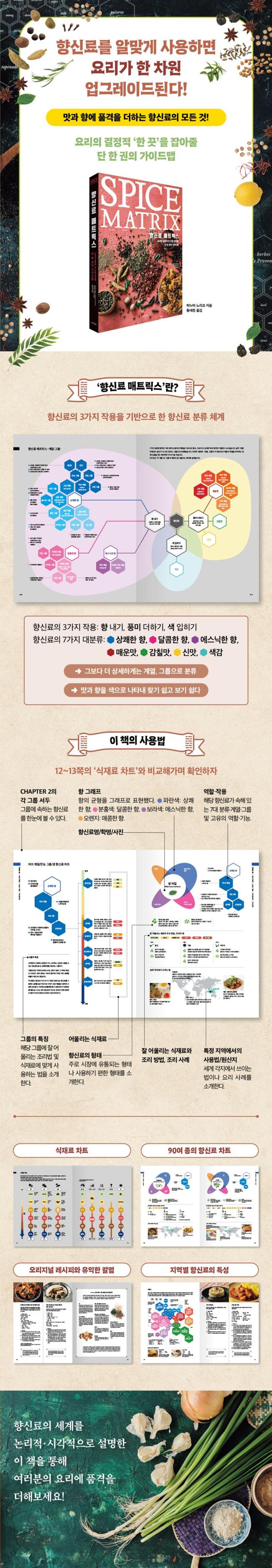 Çâ½Å·á¸¦ ÀûÀçÀû¼Ò¿¡ »ç¿ëÇÏ¸é ¿ä¸®ÀÇ ¸À°ú ÇâÀÌ ÇÑ Â÷¿ø ¾÷±×·¹À̵åµÈ´Ù. ÀÌ Ã¥Àº ±×·¯ÇÑ Çâ½Å·á¸¦ ¡®Á¦´ë·Î Ȱ¿ëÇÏ´Â ¹ý¡¯À» ´Ù·é ȹ±âÀûÀÎ °¡À̵å¸ÊÀÌ´Ù. Çâ½Å·á¿¡ ´ëÇÑ °³°ýÀûÀÎ Áö½ÄÀ» ¼Ò°³ÇÔÀº ¹°·Ð, 90°¡Áö°¡ ³Ñ´Â Çâ½Å·áÀÇ °¢ Ư¼ºÀ» ¡®Çâ½Å·á ¸ÅÆ®¸¯½º¡¯¶ó´Â ÀúÀÚ¸¸ÀÇ µ¶ÀÚÀûÀÎ ºÐ·ù ü°è¸¦ ÅëÇØ ¼³¸íÇϰí ÀÖ´Ù. ´õºÒ¾î Àß ¾î¿ï¸®´Â Àç·á¿Í Á¶¸®¹ý, ¼¼°è °¢Áö¿¡¼ ¾²ÀÌ´Â ¹ý, ¿À¸®Áö³Î ·¹½ÃÇÇ µîÀ» »ó¼¼È÷ ¼ö·ÏÇßÀ¸¸ç, ¿ä¸®ÀÇ ÆøÀ» ´õ¿í ³ÐÈ÷±â À§ÇØ ¾Ë¾ÆµÎ¸é ÁÁÀ» °¢ Çâ½Å·áÀÇ Áö¿ªÀû Ư¼ºµµ ´ã¾Ò´Ù.
