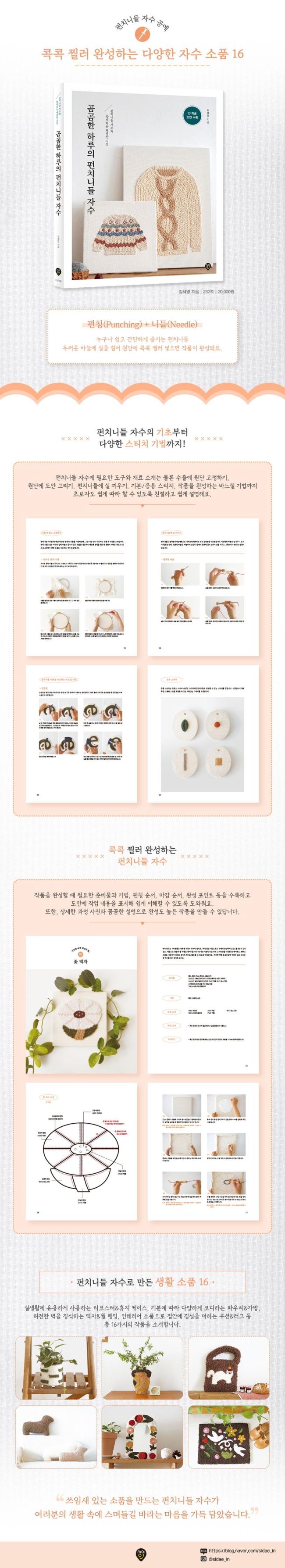 ¡º°õ°õÇÑ ÇÏ·çÀÇ ÆÝÄ¡´Ïµé ÀÚ¼ö¡»´Â ÆÝÄ¡´ÏµéÀ» óÀ½ Á¢ÇÏ´Â »ç¶÷µµ ÃæºÐÈ÷ ¿Ï¼ºµµ ³ôÀº ÀÛǰÀ» ¸¸µé ¼ö ÀÖµµ·Ï ±âÃÊ °úÁ¤ºÎÅÍ »ó¼¼È÷ ¼³¸íÇÕ´Ï´Ù. ÀÎÆ®·Î¿¡¼´Â ÆÝÄ¡´Ïµé ÀÚ¼ö¿¡ ÇÊ¿äÇÑ µµ±¸¿Í Àç·á, ´Ù¾çÇÑ Á¾·ùÀÇ ½ÇÀ» ¼Ò°³ÇØ °¡Àå ±âº»ÀûÀÎ ³»¿ëÀ» Àü´ÞÇÕ´Ï´Ù. ÆÄÆ® 1¿¡¼´Â ¼öƲ¿¡ ¿ø´ÜÀ» °íÁ¤Çϰí, ´Ïµé¿¡ ½ÇÀ» ³¢¿ì°í, µµ¾ÈÀ» ±×¸®´Â ¹æ¹ý µî ÆÝÄ¡´Ïµé ÀÚ¼öÀÇ ±âÃʸ¦, ÆÄÆ® 2¿¡¼´Â ÀÚ¼ö¿¡ »ç¿ëµÇ´Â ´Ù¾çÇÑ ½ºÆ¼Ä¡ Á¾·ù¸¦ ¼ö·ÏÇß½À´Ï´Ù. ÆÄÆ® 3¿¡¼´Â ÆÝÄ¡´Ïµé ÀÚ¼ö·Î ´Ù¾çÇÑ »ýȰ ¼Òǰ ¸¸µå´Â ¹æ¹ýÀ» ÀÚ¼¼ÇÏ°Ô ´ã¾Æ ´©±¸µç ½±°Ô µû¶ó ÇÒ ¼ö ÀÖµµ·Ï Çß½À´Ï´Ù. ¸¶Áö¸·À¸·Î ÆÄÆ® 4¿¡¼´Â µµ¼¿¡ ¼ö·ÏÇÑ ¸ðµç ÀÛǰÀÇ µµ¾ÈÀ» ´ã¾Æ ¿øÇÏ´Â µµ¾ÈÀ» È®´ë º¹»çÇÏ¿© »ç¿ëÇÒ ¼ö ÀÖµµ·Ï ±¸¼ºÇß½À´Ï´Ù.
