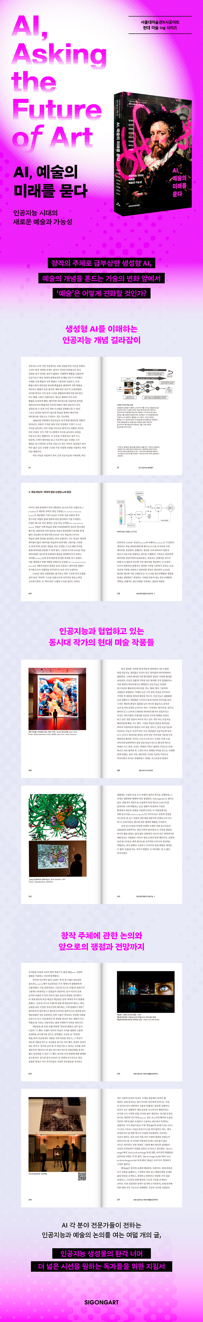 ¡¶AI, ¿¹¼úÀÇ ¹Ì·¡¸¦ ¹¯´Ù¡·´Â Çö´ë¹Ì¼ú ing ½Ã¸®ÁîÀÇ µÎ ¹øÂ° Ã¥ÀÌ´Ù. ¿¹¼ú ºÐ¾ß¿¡¼ »ç¿ëµÇ´Â ÀΰøÁö´ÉÀÇ °³³äºÎÅÍ, ÀΰøÁö´ÉÀÇ ¿¹¼ú âÀÛ ÁÖü¿¡ °üÇÑ ³íÀÇ, ±â¼ú öÇÐÀû °üÁ¡À¸·Î ¹Ù¶óº» ÀΰøÁö´É ¿¹¼ú, ÀúÀÛ±Ç ¹®Á¦, »çÀ̹ö³×ƽ½º¿Í Çö´ë ¹Ì¼ú °üÁ¡¿¡¼ º» È帧, µ¿½Ã´ë¿¡ AI¿Í Çù¾÷ÇØ ÀÛ¾÷Çϰí ÀÖ´Â ÀÛ°¡µéÀÇ ÀÛǰ, ¾ÕÀ¸·ÎÀÇ ÀïÁ¡°ú Àü¸Á±îÁö Æø³Ð°Ô ¾Ë¾Æº»´Ù. ÀÌó·³ »ý¼º ÀΰøÁö´ÉÀÌ °¡Áø °¡´É¼º°ú ÀïÁ¡À» ´Ù¾çÇÑ Àü¹®°¡µéÀÇ °üÁ¡À¸·Î ÀÌÇØÇÒ ¼ö ÀÖ´Â Áöħ¼ÀÌ´Ù.