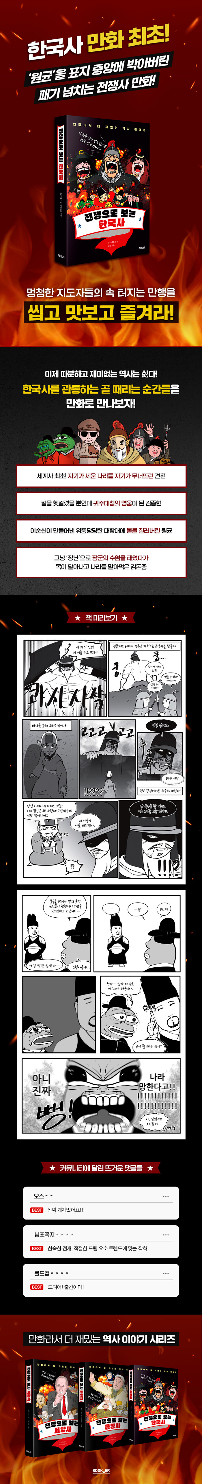 ¡¶ÀüÀïÀ¸·Î º¸´Â Çѱ¹»ç¡·´Â ¸¸È¶ó¼ ´õ Àç¹Õ´Â ¿ª»ç À̾߱⠽ø®ÁîÀÇ ¼¼ ¹øÂ° Ã¥ÀÌ´Ù. ÀÌÇØ¸¦ µ½°í Àç¹Ì¸¦ ´õÇϱâ À§ÇØ ÀÎÅÍ³Ý ¹Ò°ú ºí·¢ À¯¸Ó¸¦ Àû±ØÀûÀ¸·Î Ȱ¿ëÇß°í, ¿ª»çÀû »ç½Ç°ú °íÁõ ¶ÇÇÑ ²Ä²ÄÈ÷ ì°å´Ù. ƯÈ÷ À̹ø Ã¥Àº ¡®³²ÀÇ ³ª¶ó À̾߱⡯°¡ ¾Æ´Ï¶ó ¡®¿ì¸®³ª¶ó À̾߱⡯À̱⠶§¹®¿¡ ´õ ¸¹Àº °ø°¨°ú ¿ôÀ½, ´«¹°À» ÀھƳ½´Ù. °Ô´Ù°¡ ¿ª»çÀÇ À̸éÀ» µéÃ߾´Â µ¥¿¡ µµ°¡ ư »ì¶óÈå ¾Ñ µò°ú ¡®¿ª´ö(¿ª»ç ´öÈÄ)¡¯ ºê¼ÒÀÇ Á¶ÇÕÀº ¾Ë°í ÀÖ´Ù°í »ý°¢Çß´ø ¿ª»ç¸¦ ´Ù½Ã º¸°Ô µÇ´Â °è±âÀÌÀÚ ¹«°Ì°Ô¸¸ ´À²¸Áö´Â ¿ª»ç¸¦ ½±°í Àç¹Õ°Ô ¹Þ¾ÆµéÀÏ ¼ö ÀÖ´Â ¹æ¹ýÀÌ µÉ °ÍÀÌ´Ù.