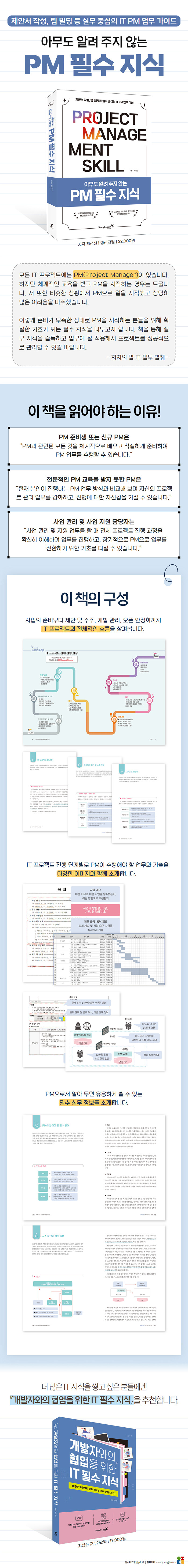 ÇÁ·ÎÁ§Æ®ÀÇ ÀüüÀûÀÎ ÁøÇà °úÁ¤À» ÀÌÇØÇÑ ÈÄ¿¡´Â Á¦¾È ¿äû¼ ºÐ¼®, ÅõÀÔ Àη °èȹ, ¿ä±¸ »çÇ× ºÐ¼®, °³¹ß °ü¸® µî ÁøÇà °úÁ¤¸¶´Ù PMÀÌ ¾Ë¾Æ¾ß ÇÒ ½Ç¹« ±â¼ú°ú ÇÊ¿äÇÑ ¹®¼¸¦ »ó¼¼È÷ ¾È³»ÇÑ´Ù. ¾÷¹« °ü°èÀÚ, Çʼö ¿ë¾î, ¹®¼ °ü¸® ±âº» °¡ÀÌµå µî ÇÁ·ÎÁ§Æ®¸¦ ´õ Àß ¼öÇàÇϱâ À§ÇØ ÇÊ¿äÇÑ ½Ç¹« Áö½Äµµ Á¦°øÇÑ´Ù.