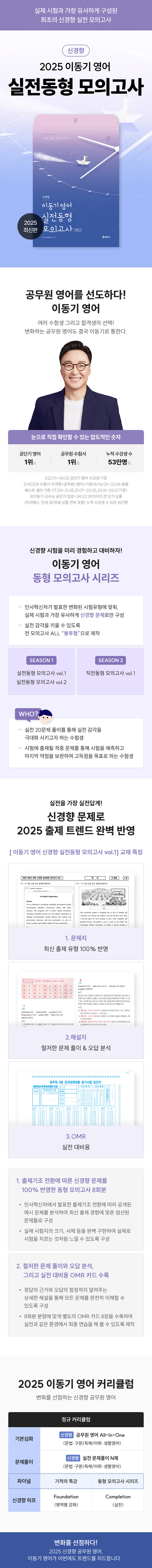 ¡´2025 À̵¿±â ¿µ¾î ½Å°æÇâ ½ÇÀüµ¿Çü ¸ðÀǰí»ç Vol.1¡µÀº °ø¹«¿ø ¿µ¾î ½ÃÇè ´ëºñ ÃÖÁ¾ Á¡°Ë¿ëÀ¸·Î ÃâÁ¦±âÁ¶ Àüȯ¿¡ µû¸¥ 8ȸºÐ ºÐ·®ÀÇ ½Å°æÇâ ¹®Á¦·Î ±¸¼ºµÈ ¸ðÀǰí»çÀÌ´Ù. ÀλçÇõ½Åó¿¡¼ ¹ßÇ¥ÇÑ ÃâÁ¦±âÁ¶ Àüȯ¿¡ µû¸¥ ¿¹½Ã ¹®Á¦¸¦ ´Ù°¢µµ·Î ºÐ¼®ÇÏ¿© °¡Àå À¯»çÇÑ ¹®Á¦µé¸¸ ¾ö¼±ÇÏ¿´´Ù. öÀúÇÑ ¹®Á¦ Ç®ÀÌ ¹× ¿À´ä ºÐ¼®À» Æ÷ÇÔÇÑ ÇØ¼³ÁýÀº ¹°·Ð, OMR Ä«µå±îÁö ÇÔ²² ¼ö·ÏÇÔÀ¸·Î½á ½ÇÀüÀ» °¡Àå ½ÇÀü´ä°Ô ´ëºñÇÒ ¼ö ÀÖµµ·Ï ÇÏ¿´´Ù.