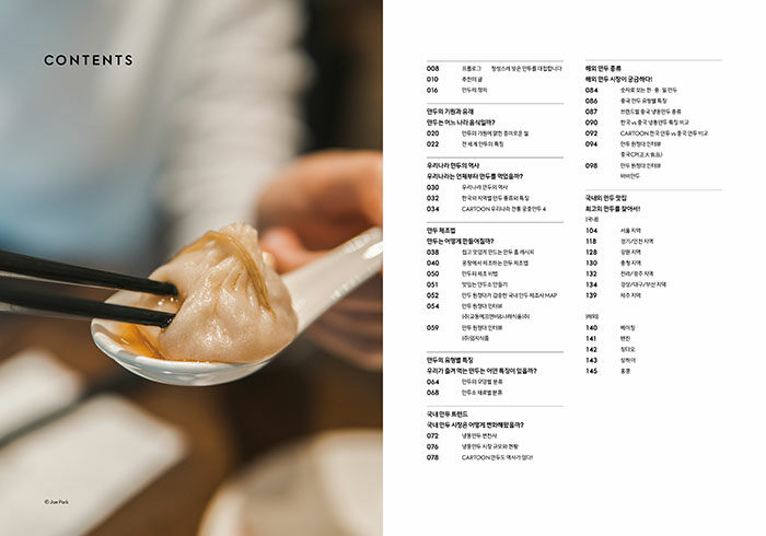 ¸¸µÎÀÇ À¯·¡¸¦ Æ÷ÇÔÇØ Àü ¼¼°è¿Í ¿ì¸®³ª¶ó ¸¸µÎÀÇ Æ¯Â¡À» ±¸ºÐÇϰí, °¡Á¤°ú ½Äǰ°øÀå¿¡¼ ¸¸µÎ¸¦ ¸¸µå´Â ¹æ¹ýÀ» ´ã¾Ò´Ù. ¶Ç Àü±¹ÀÇ ¸¸µÎ Á¦Á¶»ç¿¡ ´ëÇÑ Á¤º¸¿Í ´ã´çÀÚ ÀÎÅͺä, ½ÃÀå Á¤º¸¿Í Æ®·»µå µîµµ ÀÚ¼¼È÷ ¼Ò°³ÇØ ÀÏ¹Ý ¼ÒºñÀÚ»Ó¸¸ ¾Æ´Ï¶ó ½ÄÀ½ °ü°èÀÚ¿¡°Ôµµ ½ÇÁúÀûÀÎ µµ¿òÀ» ÁÙ ¼ö ÀÖµµ·Ï Çß´Ù. Ã¥ ¸»¹Ì¿¡´Â ±¹³»»Ó ¾Æ´Ï¶ó Áß±¹, È«Äá µî ¹«·Á 100¿©°÷¿¡ ´ÞÇÏ´Â ¸¸µÎ Àü¹®Á¡À» ÀúÀÚ°¡ Á÷Á¢ ¹æ¹®ÇØ ¸ÀÀ» º¸°í Èıâ¿Í ´ëÇ¥ ¸Þ´º µî ¾ËÂù Á¤º¸¸¦ ´ã¾Æ ¼Ò°³ÇÑ´Ù.