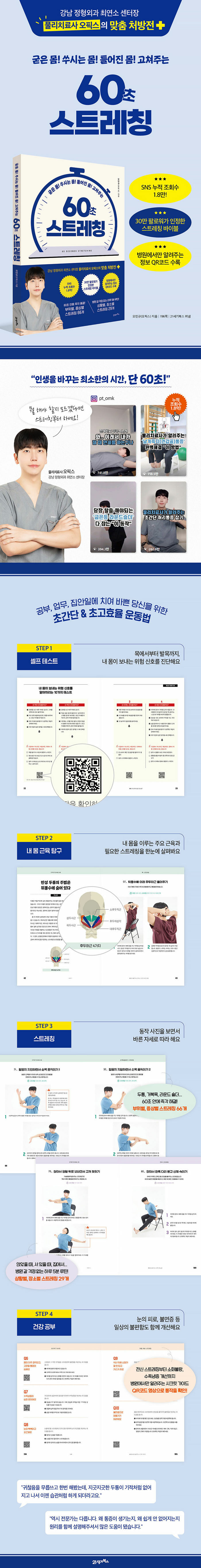 ¡®ÇÑ °¡Áö ½ºÆ®·¹ÄªÀ¸·Î ¿©·¯ ÅëÁõÀ» ÇØ°áÇÒ ¼ö´Â ¾øÀ»±î?¡¯, ¡®½ºÆ®·¹ÄªÀ¸·Î ¼ÒȺҷ®µµ °³¼±ÇÒ ¼ö ÀÖÀ»±î?¡¯ ÀÌ·± ±Ã±ÝÁõµµ ÀÌ Ã¥À» ÅëÇØ ÇØ¼ÒÇÒ ¼ö ÀÖ´Ù. ÀÌ Ã¥ÀÇ ºÎ·Ï¿¡¼´Â ÀúÀÚ°¡ º´¿ø¿¡¼ ½ÇÁ¦·Î ȯÀڵ鿡°Ô ÀÚÁÖ ÃßõÇÏ´Â ½ºÆ®·¹Äª°ú Á¤º¸¸¦ Á¦°øÇÑ´Ù. ¸ÕÀú ¡®Àü½Å 10ºÐ ÇÁ·Î±×·¥¡¯ 3°¡Áö´Â 10ºÐ ¸¸¿¡ Àü½ÅÀ» Ç®¾îÁÖ´Â ¾ÐµµÀûÀÎ È¿À²À» ÀÚ¶ûÇϸç, Ä÷¯ »çÁøÀ» º¸¸é¼ ½±°Ô µû¶ó ÇÒ ¼ö ÀÖ´Ù. ÀÌ¾î¼ ¡®¸ÂÃã ó¹æ ½ºÆ®·¹Äª¡¯¿¡¼´Â ȯÀڵ鿡°Ô °¡Àå ÀÚÁÖ µé¾ú´ø °í¹Î°ú ±×¿¡ ¸Â´Â ½ºÆ®·¹Äª 10°¡Áö¸¦ Á¦½ÃÇϸç, QRÄڵ带 ÀνÄÇÏ¸é ¿µ»óÀ» º¸¸é¼ µû¶ó ÇÒ ¼öµµ ÀÖ´Ù.