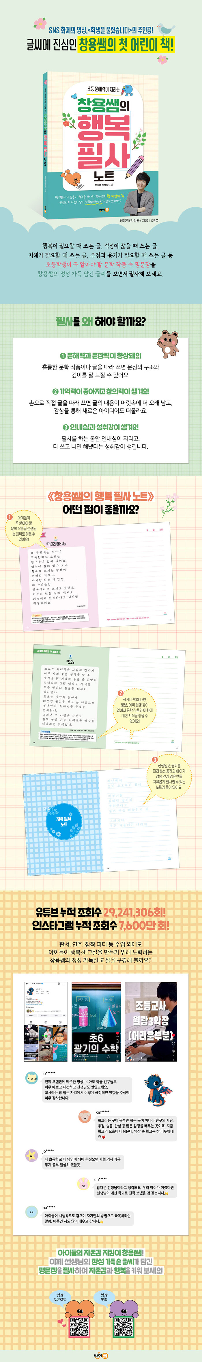 ÀÌ Ã¥Àº ¿¹»Û ±Û¾¾¸¦ µû¶ó ¾²´Â ´Ü¼øÇÑ È°µ¿À» ³Ñ¾î, ¾ÆÀ̵éÀÌ ±Û¾¾ ¼Ó¿¡¼ ÀÚ½ÅÀ» ¹ß°ßÇϰí Ç¥ÇöÇÏ´Â ÈûÀ» Ű¿ìµµ·Ï µ½´Â ´ÙÁ¤ÇÑ ±æÀâÀ̰¡ µÇ¾îÁÙ °ÍÀÔ´Ï´Ù. ¹«¾ùº¸´Ù ÀÌ Ã¥Àº ÀÛ°¡ÀÇ ¾Æ³»·Î¼ °¡±îÀÌ¿¡¼ ÁöÄѺ» ³ë·Â°ú Áø½ÉÀÌ °í½º¶õÈ÷ ´ã±ä °á°ú¹°À̶ó ´õ¿í Ưº°ÇÕ´Ï´Ù. ±Û¾¾ÀÇ ¾Æ¸§´Ù¿ò°ú °¡Ä¡¸¦ ¾ÆÀ̵鿡°Ô ÀüÇϰíÀÚ ÇÏ´Â ÀÛ°¡ÀÇ ¸¶À½ÀÌ Ã¥ °÷°÷¿¡ ½º¸çµé¾î ÀÖ½À´Ï´Ù. ¾ÆÀ̵éÀÌ ÇÑ ±ÛÀÚ ÇÑ ±ÛÀÚ ½á ³»·Á°¡´Â µ¿¾È ´À³¥ ±â»Ý°ú ¼ºÃë°¨ÀÌ ¸¶À½¼Ó¿¡ ¿À·¡µµ·Ï ¸Ó¹°±â¸¦ ¹Ù¶ø´Ï´Ù.