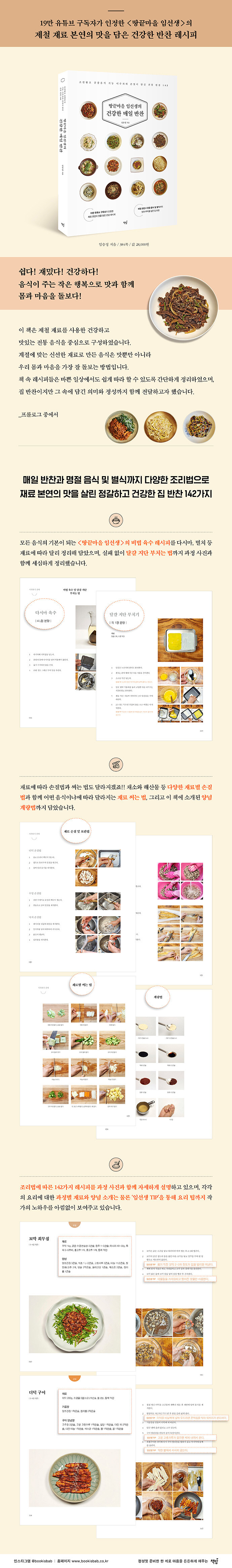 ¡®À½½ÄÀÌ ÁÖ´Â Èû¡¯À» ¸ö¼Ò ´À³¢¸ç 19¸¸ À¯Æ©ºê ±¸µ¶ÀÚµé°ú ²ÙÁØÈ÷ ¼ÒÅëÇØ¿Â <¶¥³¡¸¶À» ÀÓ¼±»ý>ÀÌ À̹ø¿¡ Á¦Ã¶ Àç·á º»¿¬ÀÇ ¸ÀÀ» ´ãÀº °Ç°ÇÑ ¸ÅÀÏ ¹ÝÂù ·¹½ÃÇǸ¦ ¹¾î ÇÑ ±ÇÀÇ Ã¥À¸·Î Æì³Â´Ù. Àϻ󿡼 Á¢ÇÏ´Â Áý ¹ÝÂù ÇϳªÇϳª°¡ ÁÖ´Â À§·Î¿Í ±â»ÝÀ» ³ª´©°í ½ÍÀº ¸¶À½¿¡¼ À̹ø Ã¥À» ÁýÇÊÇÏ°Ô µÈ ÀÛ°¡´Â Á¶¼±¿ÕÁ¶ ±ÃÁßÀ½½Ä ±â´É À̼öÀÚ·Î ¹Ù»Û Çö´ëÀεéÀÌ ½±°Ô µû¶ó ÇÏ¸ç °£ÆíÇÏ°Ô °Ç°ÇÑ Áý¹äÀ» Áñ±æ ¼ö ÀÖµµ·Ï ´Ù¾çÇÑ Á¶¸®¹ýÀ» Ȱ¿ëÇÑ ¸ÅÀÏ ¹ÝÂù ·¹½ÃÇÇ 142°¡Áö¸¦ ¾ËÂ÷°Ô ´ã¾Æ³Â´Ù.