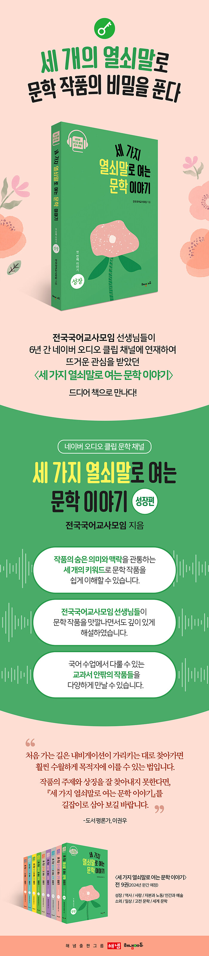 Àü±¹±¹¾î±³»ç¸ðÀÓ¿¡¼´Â 2018³âºÎÅÍ ³×À̹ö ¿Àµð¿À Ŭ¸³ ä³Î <¼¼ °¡Áö ¿¼è¸»·Î ¿©´Â ¹®ÇÐ À̾߱â>¿¡ ´Ù¾çÇÑ ¹®ÇÐ ÀÛǰµéÀ» ¸À±ò³ª¸é¼µµ ±íÀÌ ÀÖ´Â ÇØ¼³·Î ²ÙÁØÈ÷ ¼Ò°³Çϰí ÀÖ´Ù. ÀÌ·¸°Ô 6³â ³Ñ°Ô ³ìÀ½ÇÑ ³»¿ëÀ» û¼Ò³â°ú ¹®ÇÐÀ» ÁÁ¾ÆÇÏ´Â ÀÏ¹Ý µ¶ÀÚµéÀ» À§ÇØ Ã¥À¸·Î »õ·Ó°Ô ¿«¾î ³½ °ÍÀÌ ¡º¼¼ °¡Áö ¿¼è¸»·Î ¿©´Â ¹®ÇÐ À̾߱⡻ ½Ã¸®Áî´Ù.