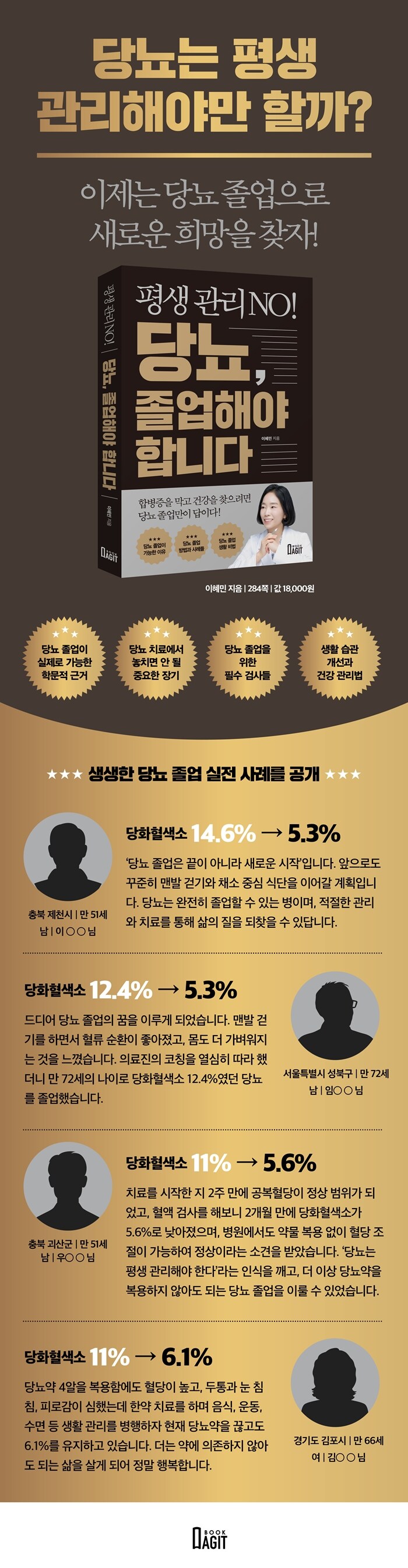Çö´ë ÀÇÇп¡¼´Â ´ç´¢º´À» Æò»ý °ü¸®ÇØ¾ß ÇÏ´Â ¸¸¼º ÁúȯÀ¸·Î ¿©±ä´Ù. ±×·¯³ª ÀÌÇý¹Î ¿øÀåÀº ÀÌ·¯ÇÑ Åë³äÀ» ±ú°í, ½ÇÁ¦ ÀÓ»ó »ç·Ê¸¦ ÅëÇØ ¡®´ç´¢ Á¹¾÷¡¯ÀÌ °¡´ÉÇÔÀ» Áõ¸íÇϸç, ´ç´¢¸¦ ºÒÄ¡º´À¸·Î ¿©±â¸ç ¾à¹° Ä¡·á¿¡ ÀÇÁ¸ÇÏ´Â ¸¹Àº ȯÀÚ¿¡°Ô »õ·Î¿î Èñ¸ÁÀ» Á¦½ÃÇÑ´Ù. ÀúÀÚ´Â ¼ö¸¹Àº ´ç´¢ÀÎÀ» Áø·áÇÏ¸ç ¾òÀº °æÇè°ú ¿¬±¸ °á°ú¸¦ ¹ÙÅÁÀ¸·Î, ´Ü¼øÇÑ Ç÷´ç Á¶ÀýÀ» ³Ñ¾î ±Ùº»ÀûÀÎ Ä¡À¯¸¦ ÅëÇÑ ´ç´¢ Á¹¾÷À» Á¦¾ÈÇÑ´Ù.