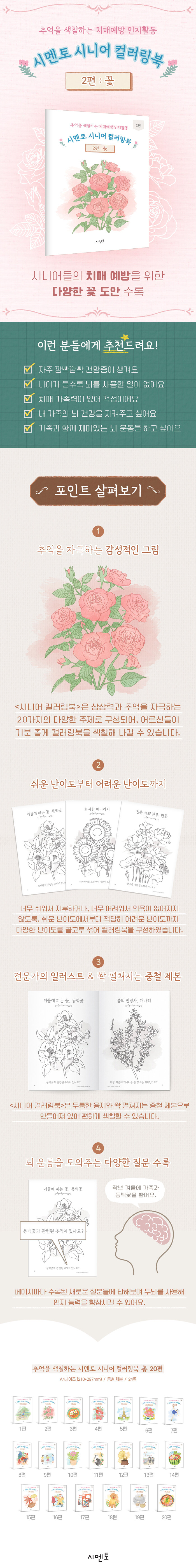 ÇູÇÏ°í °Ç°­ÇÑ ³ë³â±â¸¦ À§ÇØ ½Ã´Ï¾îµéÀÇ Ä¡¸Å ¿¹¹æÀ» µ½´Â Ä÷¯¸µºÏÀÌ´Ù. »ó»ó·Â°ú Ãß¾ïÀ» ÀÚ±ØÇÏ´Â 20°¡ÁöÀÇ ´Ù¾çÇÑ ÁÖÁ¦·Î ±¸¼ºµÇ¾î ¾î¸£½ÅµéÀÌ ±âºÐ ÁÁ°Ô Ä÷¯¸µºÏÀ» »öÄ¥ÇØ ³ª°¥ ¼ö ÀÖ´Ù. ¶ÇÇÑ ÆäÀÌÁö¸¶´Ù ¼ö·ÏµÈ ´Ù¾çÇÑ Áú¹®À» ÅëÇØ ³ú ¿îµ¿À» µµ¿Í ÀÎÁö ´É·ÂÀ» Çâ»ó½Ãų ¼ö ÀÖµµ·Ï ÇÏ¿´´Ù.