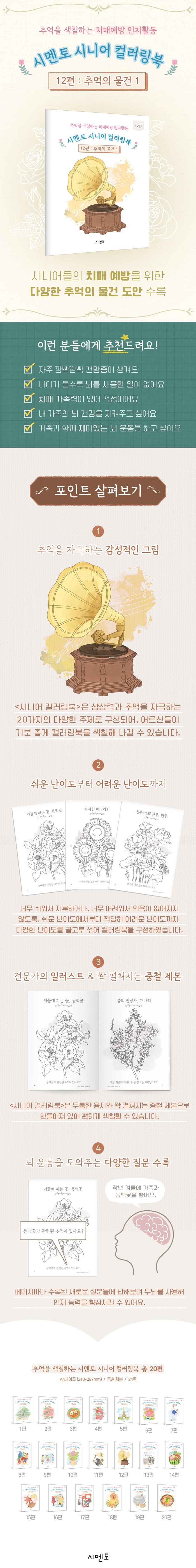 ÇູÇÏ°í °Ç°­ÇÑ ³ë³â±â¸¦ À§ÇØ ½Ã´Ï¾îµéÀÇ Ä¡¸Å ¿¹¹æÀ» µ½´Â Ä÷¯¸µºÏÀÌ´Ù. »ó»ó·Â°ú Ãß¾ïÀ» ÀÚ±ØÇÏ´Â 20°¡ÁöÀÇ ´Ù¾çÇÑ ÁÖÁ¦·Î ±¸¼ºµÇ¾î ¾î¸£½ÅµéÀÌ ±âºÐ ÁÁ°Ô Ä÷¯¸µºÏÀ» »öÄ¥ÇØ ³ª°¥ ¼ö ÀÖ´Ù. ¶ÇÇÑ ÆäÀÌÁö¸¶´Ù ¼ö·ÏµÈ ´Ù¾çÇÑ Áú¹®À» ÅëÇØ ³ú ¿îµ¿À» µµ¿Í ÀÎÁö ´É·ÂÀ» Çâ»ó½Ãų ¼ö ÀÖµµ·Ï ÇÏ¿´´Ù.