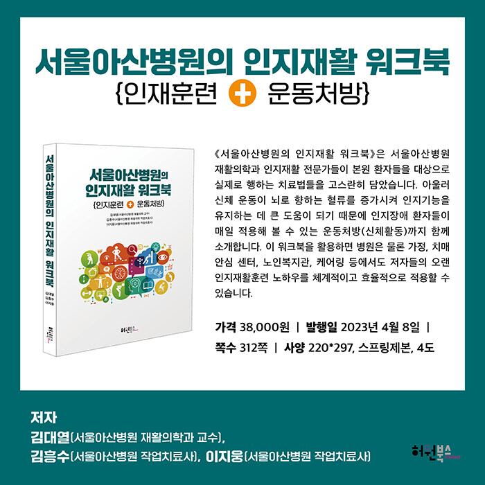 ¡¶¼¿ï¾Æ»êº´¿øÀÇ ÀÎÁöÀçȰ ¿öÅ©ºÏ¡·Àº ¼¿ï¾Æ»êº´¿ø ÀçȰÀÇÇаú ÀÎÁöÀçȰ Àü¹®°¡µéÀÌ º»¿ø ȯÀÚµéÀ» ´ë»óÀ¸·Î ½ÇÁ¦·Î ÇàÇÏ´Â Ä¡·á¹ýµéÀ» °í½º¶õÈ÷ ´ã¾Æ º´¿ø ȯ°æ¿¡¼ ÁøÇàµÇ´Â ÀÎÁöÈÆ·Ã ¹× Ä¡·á¸¦ °¡Á¤, Ä¡¸Å¾È½É¼¾ÅÍ, ³ëÀκ¹Áö°ü, º´¿ø, Äɾ µî¿¡¼ »ç¿ëÇÒ ¼ö ÀÖ°Ô Á¦ÀÛÇß´Ù.
