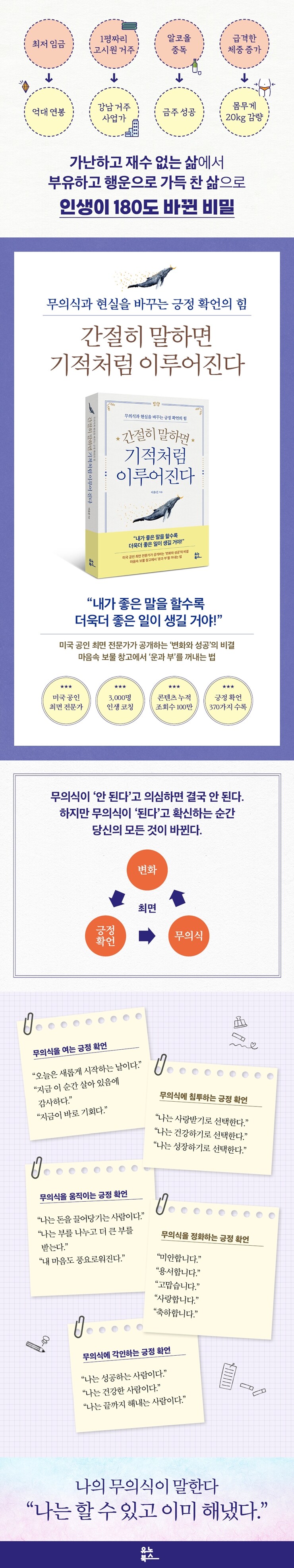 ÀÌ Ã¥¿¡ ¾î¶»°Ô ÇÏ¸é ±àÁ¤ÀÇ ¹«ÀǽÄÀ¸·Î ¹Ù²Ü ¼ö ÀÖ´ÂÁö, ¾î¶² ¸»ÀÌ ÁøÂ¥ È¿°ú°¡ ÀÖ´ÂÁö, ¾ðÁ¦ ¾î¶»°Ô ¸»ÇØ¾ß ÇÏ´ÂÁö¿¡ ´ëÇÑ ±¸Ã¼ÀûÀÎ ¹æ¹ýµéÀÌ µé¾î ÀÖ´Ù. ½ÇÁ¦·Î Ȱ¿ëÇÒ ¼ö ÀÖ´Â ±àÁ¤ È®¾ð 370°¡Áöµµ ´ã°Ü ÀÖ´Ù. ¹«ÀǽÄÀ» ¿©´Â ±àÁ¤ È®¾ð, ¹«ÀǽĿ¡ ħÅõÇÏ´Â ±àÁ¤ È®¾ð, ¹«ÀǽÄÀ» ¿òÁ÷ÀÌ´Â ±àÁ¤ È®¾ð, ¹«ÀǽÄÀ» Á¤ÈÇÏ´Â ±àÁ¤ È®¾ð, ¹«ÀǽĿ¡ °¢ÀÎÇÏ´Â ±àÁ¤ È®¾ðÀ¸·Î ÀÚ½ÅÀÌ ¿øÇÏ´Â ¹Ù¸¦ ²ø¾î´ç±æ ¼ö ÀÖÀ» °ÍÀÌ´Ù.