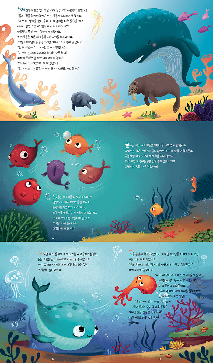¹Ù´Ù µ¿¹°µéÀÇ »ç¶û°ú ¸ðÇèÀÌ ´ã°Ü ÀÖ´Ù. Ã¥À» ÆîÄ¡¸é ¾Æ¸§´ä°í Ǫ¸¥ ¹Ù´å¼Ó dz°æ°ú ¹Ù´Ù µ¿¹°µéÀÇ ±Í¿©¿î ¸ð½ÀÀÌ ´«À» »ç·ÎÀâ´Â´Ù. ¹Ù´å¼Ó¿¡¼ ÀϾ´Â Èï¹ÌÁøÁøÇÑ ¸ðÇè À̾߱⸦ µû¶ó°¡´Ù º¸¸é ¸¶Ä¡ ¹Ù´å¼Ó¿¡ ÀÖ´Â °Í °°Àº ±âºÐÀÌ µç´Ù. ÆòÈ·Ó°í Áñ°Ì°Ô¸¸ º¸ÀÌ´Â ¹Ù´å¼Ó¿¡µµ Á¾Á¾ À§Çè¿¡ óÇÏ´Â ¾Æ±â µ¿¹°µéÀÌ ÀÖ´Ù. ½½±â·Ó°í ¿ë°¨ÇÏ°Ô À§Çè¿¡¼ Å»ÃâÇÏ´Â À̾߱â´Â ¾ÆÀ̵鿡°Ô ¿ë±â¿Í ÁöÇý¸¦ ÁØ´Ù.
