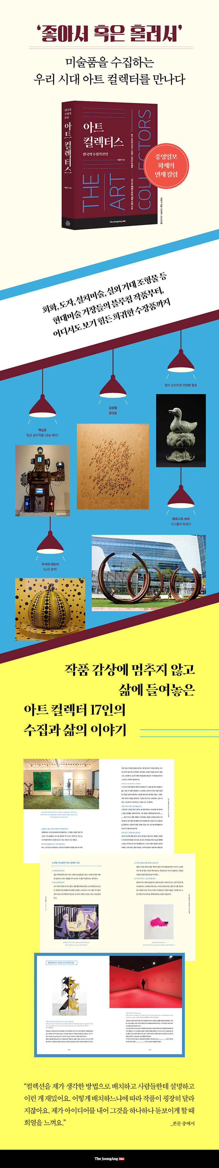 ¿¹¼ú ÀÛǰÀ» ´Ü¼øÈ÷ °¨»óÇÏ´Â µ¥ ±×Ä¡Áö ¾Ê°í, »î ¼Ó¿¡ µé¿© ÇÔ²² »ì¾Æ°¡´Â »ç¶÷µéÀÌ ÀÖ´Ù. ¡º¾ÆÆ® Ä÷ºÅͽº¡»´Â ±×·± À̵é, ¿¹¼úÀ» Áø½ÉÀ¸·Î »ç¶ûÇϸç ÀÚ½ÅÀÇ °ø°£ ¼Ó¿¡ ÀÛǰÀ» µé¿©¿Â '¾ÆÆ® Ä÷ºÅÍ'µéÀÇ À̾߱⸦ ´ãÀº Ã¥ÀÌ´Ù. ÀÌ Ã¥Àº ¿¹¼ú Àü¹® ±âÀڷΠȰµ¿Çؿ ÀÌÀºÁÖ ÀúÀÚ°¡ Àú¸¶´Ù ´Ù¸¥ °³¼º°ú ÃëÇâÀ» Áö´Ñ Çѱ¹ÀÇ ¾ÆÆ® Ä÷ºÅÍ 17ÀÎÀ» Á÷Á¢ ¸¸³ª ±×µéÀÇ ¼öÁý öÇаú ¿¹¼ú ¼¼°è¸¦ ¹Ðµµ ÀÖ°Ô ´ã¾Æ³½ ±â·ÏÀÌ´Ù. ´Ü¼øÇÑ ¼öÁýǰ ³ª¿À» ³Ñ¾î, ¿¹¼úÀ» ÅëÇØ Àڱ⸸ÀÇ °¨¼º°ú ½Ã¼±À» ÀÛǰ¿¡ Åõ¿µÇÏ¸ç »îÀ» ä¿ö°¡´Â À̵éÀÇ ³»¹ÐÇÑ À̾߱⸦ »ý»ýÇÏ°Ô ÀüÇÑ´Ù. ÀúÀÚ´Â °¢ Ä÷ºÅÍÀÇ ÀÚÅðú ¼öÀå°í, °¶·¯¸® µîÀ» Á÷Á¢ ã¾Æ°¡ ÀÏ»ó ¼Ó¿¡¼ ¿¹¼úÀÌ ¾î¶»°Ô ½º¸çµé¾î ÀÖ´ÂÁö¸¦ ±â·ÏÇϸç, ÀÛǰÀÌ °ø°£°ú Àλý ¼Ó¿¡¼ ¾î¶»°Ô Àǹ̸¦ ¸¸µé¾î°¡´ÂÁö¸¦ º¸¿©ÁØ´Ù. ÇѶ§´Â »çÀûÀÎ °ø°£¿¡ ¸Ó¹°·¶´ø À̵éÀÇ Ä÷º¼ÇÀÌ ÀÌÁ¦ Çѱ¹ ¿¹¼ú°è¸¦ ¿òÁ÷ÀÌ´Â ¼ÒÁßÇÑ ÀÚ»êÀ¸·Î ÀÚ¸®¸Å±èÇÑ Áö±Ý, ±×µéÀÇ ÁøÂ¥ À̾߱⸦ ÀÌ Ã¥À» ÅëÇØ ¸¸³ªº¼ ¼ö ÀÖ´Ù.
