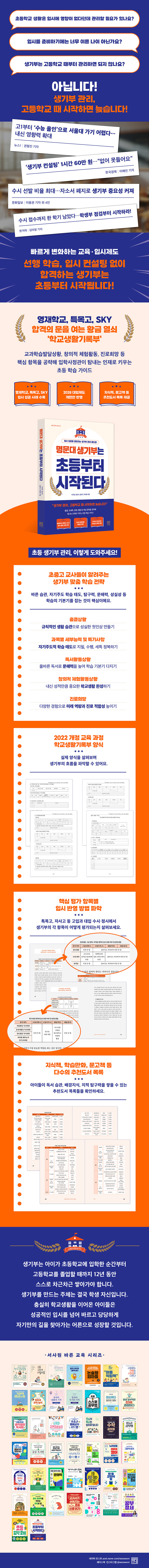 ÃÊÁß°í ÇöÁ÷ ±³»ç·Î ÀÌ·ïÁø ¡¶¸í¹®´ë »ý±âºÎ´Â ÃʵîºÎÅÍ ½ÃÀ۵ȴ١·ÀÇ ÀúÀÚµéÀº ÀԽô °á±¹ Ãʵî Çб³»ýȰºÎÅÍ ½ÃÀ۵ȴٴ Àǰ߿¡ ÀÔÀ» ¸ð¾Ò°í, Áø·Î ¹× ±³À° ¹æÇ⼺À» °í¹ÎÇÏ´Â ÇкθðÀÇ ÁüÀ» ´ú¾îÁÖ°íÀÚ ÀÌ Ã¥À» Ãâ°£Çß´Ù. ¾ÆÀÌÀÇ ¹Ù¸¥ »ýȰ ½À°ü°ú ÀÚ±âÁÖµµ ÇнÀÀÌ »ý±âºÎÀÇ ´Ù¾çÇÑ ¿µ¿ª¿¡¼ ¾î¶»°Ô Æò°¡µÇ´ÂÁö ÇϳªÇϳª ¤¾îÁÖ¸ç »ý±âºÎ ÇÙ½É Ç׸ñº°·Î ÃÊµî ¸ÂÃã ÇнÀ Àü·«À» Á¦°øÇÑ´Ù. ¶ÇÇÑ 2022 °³Á¤ ±³À° °úÁ¤ÀÇ »ý±âºÎ ¾ç½ÄÀ» ºñ·ÔÇØ ¼ö½Ê ¸íÀÇ ÀԽà ¼º°ø »ç·Ê¿Í Ãßõµµ¼ ¸ñ·Ï, ÃʵîÇлýÀÌ µþ ¸¸ÇÑ ºÐ¾ßº° ÀÚ°ÝÁõ, ±Û¾²±â ¿¬½À¹ý µî ´Ù¾çÇÑ ÇнÀ Á¤º¸¸¦ ¾ËÂ÷°Ô ´ã¾Ò´Ù.