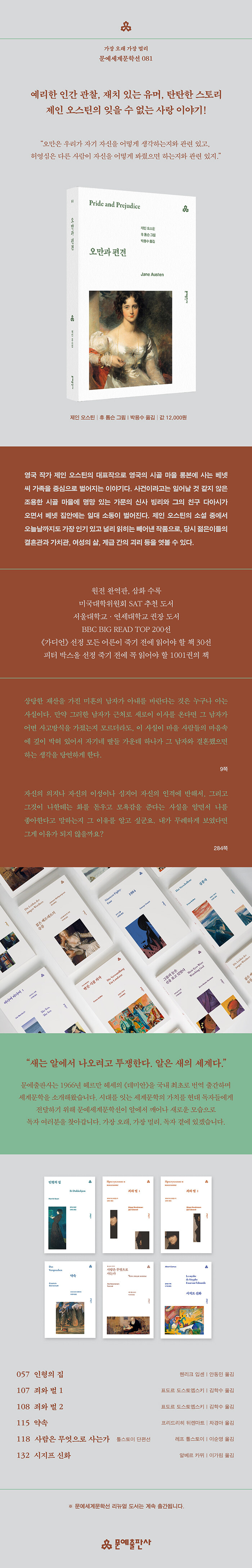 Çö´ë ¿µ¹Ì ¹®Çп¡¼ ÃÖ°íÀÇ °íÀü °¡¿îµ¥ Çϳª·Î ²ÅÈ÷´Â ¡¶¿À¸¸°ú Æí°ß¡·Àº ³¯Ä«·Î¿î ½Ã¼±°ú ÀçÄ¡ ÀÖ´Â ¹®Ã¼·Î 18¼¼±â ¿µ±¹ Áß»ó·ùÃþÀÇ ¸ð½ÀÀ» Ź¿ùÇÏ°Ô Ç¥ÇöÇÑ´Ù. ¼¼·ÃµÈ À¯¸Ó, ÄèȰÇÑ ¿©ÁÖÀΰø, ³¶¸¸ÀûÀÎ ´ë´Ü¿ø µîÀ¸·Î Àå½ÄµÈ, Á¦ÀÎ ¿À½ºÆ¾ÀÇ ¼Ò¼³ Áß¿¡¼µµ ¿À´Ã³¯±îÁö °¡Àå Àαâ ÀÖ°í ³Î¸® ÀÐÈ÷´Â »©¾î³ ÀÛǰÀÌ´Ù. °¢Á¾ ¿µÈ¿Í µå¶ó¸¶ µîÀ¸·Î ²÷ÀÓ¾øÀÌ »õ·Ó°Ô °¢»öµÇ°í ÀÖÀ¸¸ç ¼¼´ë¸¦ ¶Ù¾î³Ñ¾î Á¦ÀÎ ¿À½ºÆ¾ÀÇ µ¶ÀÚÃþÀ» ³ÐÇô°¡°í ÀÖ´Ù. Á¦ÀÎ ¿À½ºÆ¾ÀÌ ¹¦»çÇÑ ¿¬¾Ö¿¡ ¾ôÈù ³²³àÀÇ Â÷ÀÌ, ´ç´çÇÑ ÁÖÀΰøµéÀÇ ÀÚ¾ÆÀÇ½Ä µîÀº ¿À´Ã³¯ ÀþÀº µ¶Àڵ鿡°Ôµµ °ø°¨À» ºÒ·¯ÀÏÀ¸Å²´Ù.