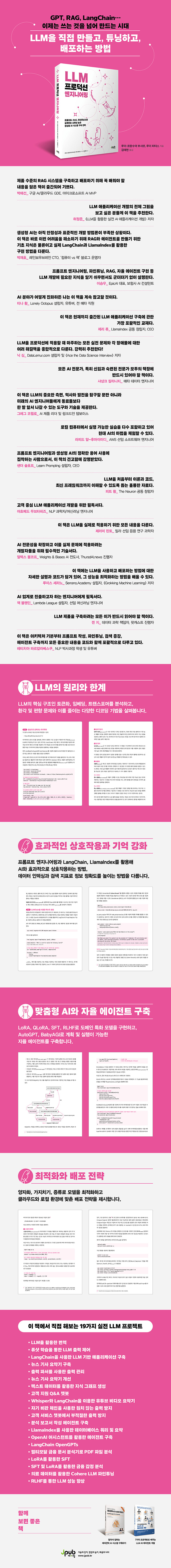 ¸ðµ¨ÀÇ ±¸Á¶¸¦ ÀÌÇØÇϰí, Á¤È®ÇÏ°í ½Å·ÚÇÒ ¼ö ÀÖ´Â »ý¼ºÇü AI ½Ã½ºÅÛ ¼³°è¹ý. LLM »ó¿ëȰ¡ °¡¼ÓÈµÇ¸é¼ Á¤È®¼º, ½Å·Ú¼º, È®À强À» °®Ãá ÇÁ·Î´ö¼Ç ¼öÁØÀÇ ±¸Çö ¿ª·®ÀÌ ÇÙ½É ±â¼ú·Î ÀÚ¸® Àâ°í ÀÖ´Ù. ÀÌÁ¦ °³¹ßÀÚ´Â LLM Àüü ±â¼ú ½ºÅÿ¡ ´ëÇÑ ±¸Á¶Àû ÀÌÇØ¸¦ °®Ãç¾ß ÇÑ´Ù. ÀÌ Ã¥Àº »ý¼ºÇü AIÀÇ ÇÙ½É °³³äºÎÅÍ ½Ã½ºÅÛ ±¸Ãà°ú ¹èÆ÷±îÁöÀÇ È帧À» ü°èÀûÀ¸·Î ¾È³»Çϸç, Æ®·£½ºÆ÷¸Ó ±â¹Ý ¸ðµ¨ÀÇ ÀÛµ¿ ¿ø¸®, ´Ù¾çÇÑ ÇÁ·ÒÇÁÆ® Àü·«, RAG ¼³°è, ÆÄÀÎÆ©´× ±â¹ý, ·©Ã¼Àΰú ¶ó¸¶À妽º µîÀÇ ÇÁ·¹ÀÓ¿öÅ© Ȱ¿ë±îÁö Æø³Ð°Ô ´Ù·é´Ù. LLM ±â¼úÀ» °³³äºÎÅÍ ÀÀ¿ë±îÁö À¯±âÀûÀ¸·Î ¿¬°áÇØ ¹è¿ì°íÀÚ ÇÏ´Â °³¹ßÀÚ¿¡°Ô ±æÀâÀ̰¡ µÇ¾îÁÙ °ÍÀÌ´Ù.