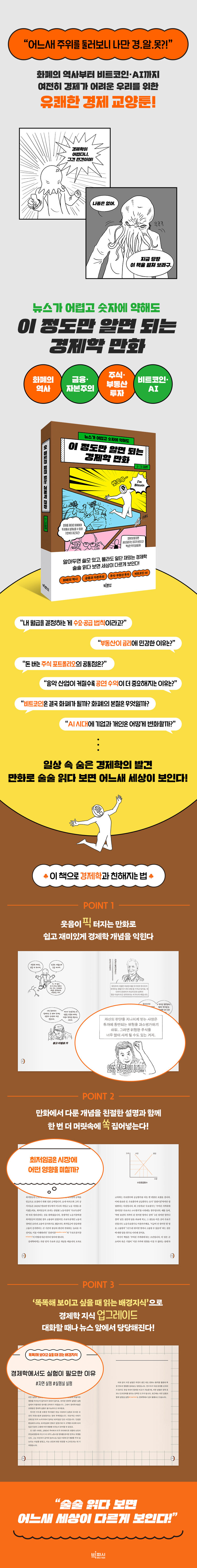 ÁÖ½Ä, Áý°ª, AI¡¦ ´Ùµé Àß ¾Æ´Â °Í °°Àºµ¥, ³ª¸¸ ¾Æ¹«°Íµµ ¸ð¸£´Â °Í °°´Ù. ±×·¡¼ °æÁ¦ ´º½º Á» º¸·Á ÇÏ¸é ³¸¼± ¿ë¾î, ¾î·Á¿î ±×·¡ÇÁ ¶§¹®¿¡ °æÁ¦ÇÐÀº ¾î·Æ´Ù´Â ¼±ÀÔ°ßÀÌ »ý°Ü Áö·¹ °ÌÀ» ¸Ô´Â´Ù. ±×·± »ç¶÷µéÀ» À§ÇØ ¡¶ÀÌ Á¤µµ¸¸ ¾Ë¸é µÇ´Â °æÁ¦ÇÐ ¸¸È¡·´Â Á¦¸ñ ±×´ë·Î, Áö±Ý ´çÀå ÇÊ¿äÇÑ ÃÖ¼ÒÇÑÀÇ °æÁ¦ÇÐ Áö½ÄÀ» ÇÑ ±Ç¿¡ ´ã¾Ò´Ù. ¹°°¡, Áý°ª, ÁÖ½Ä, ºÎµ¿»ê °°Àº Çö½Ç °¡±îÀÌ¿¡ ÀÖ´Â ¹®Á¦ºÎÅÍ ºñÆ®ÄÚÀÎ, K-pop, °¡Â¥´º½º, AI °°Àº °æÁ¦ ÃֽŠÀ̽´±îÁö. ¡°ÀÌ·± °Íµµ °æÁ¦ÇÐÀ̾ú¾î?¡± ÇÏ¸ç ±Ã±ÝÇÏÁö¸¸ ½±°Ô ¾Ë·ÁÁÖ´Â »ç¶÷ÀÌ ¾ø´ø Áú¹®µé¿¡ ¸íÄèÇÏ°Ô ´äÇØÁØ´Ù.