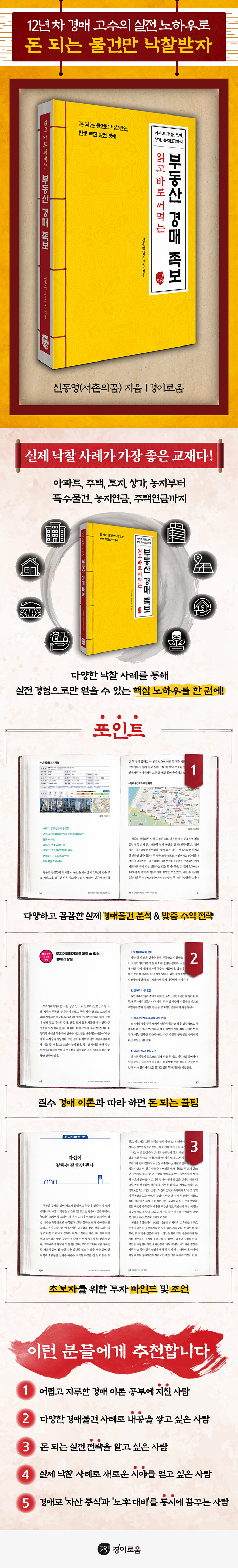 ÀÌ Ã¥Àº »ç¶÷µéÀÌ °¡Àå °ü½É °®´Â ÁÖÅðú ¾ÆÆÄÆ®´Â ¹°·Ð °Ç¹°, ÅäÁö, »ó°¡, ³óÁö, Ư¼ö¹°°Ç±îÁö ´Ù¾çÇÑ ¹°°ÇÀÇ ³«Âû »ç·Ê¸¦ ´ã°í ÀÖ´Ù. »Ó¸¸ ¾Æ´Ï¶ó ¡®¹Ý°ª¿¡ ³«Âû¹Þ´Â ¹æ¹ý¡¯ ¡®½Å°ÇÀÇ °¡Ä¡¡¯ ¡®Áø»ó 乫ÀÚ¸¦ ´Ù·ç´Â ¿ä·É¡¯ µî À̷п¡¼´Â ¹è¿ï ¼ö ¾ø´Â, ÀúÀÚÀÇ °æÇè¿¡¼ ¿ì·¯³ ÅõÀÚ Àü·«°ú ³ëÇϿ찡 ¾Æ³¦¾øÀÌ ´ã°Ü ÀÖ´Ù. ¶ÇÇÑ °¢ À帶´Ù ¹Ýµå½Ã ±â¾ïÇØ¾ß ÇÒ ¿øÄ¢À̳ª ¸¶À½°¡ÁüÀ» Á¤¸®ÇØ, µ¶ÀÚ°¡ ´Ü¼øÈ÷ »ç·Ê¸¦ µû¶ó°¡´Â µ¥ ±×Ä¡Áö ¾Ê°í ½ÇÀü¿¡ ÀÀ¿ëÇÒ ¼ö ÀÖµµ·Ï ½ÇÁúÀûÀÎ µµ¿òÀ» ÁØ´Ù. ÀÌ Ã¥Àº ¼º°ø°ú ½ÇÆÐÀÇ °æÇè, ¹°°ÇÀ» º¸´Â »õ·Î¿î ½Ã°¢, Â÷º°ÈµÈ Àü·«À» ¹è¿ì°í ½ÍÀº µ¶Àڵ鿡°Ô µçµçÇÑ ±æÀâÀ̰¡ µÉ °ÍÀÌ´Ù. °æ¸Å¸¦ óÀ½ ½ÃÀÛÇÏ´Â Ãʺ¸ºÎÅÍ ½ÇÀü ³»°øÀ» ´ÙÁö°í ½ÍÀº Áß±Þ ÅõÀÚÀÚ±îÁö, ´©±¸³ª ¡®µ· ¹ö´Â¡¯ °æ¸Å ÅõÀÚ¸¦ ÇÒ ¼ö ÀÖ´Â Áö¸§±æ·Î ¾È³»ÇÒ °ÍÀÌ´Ù.