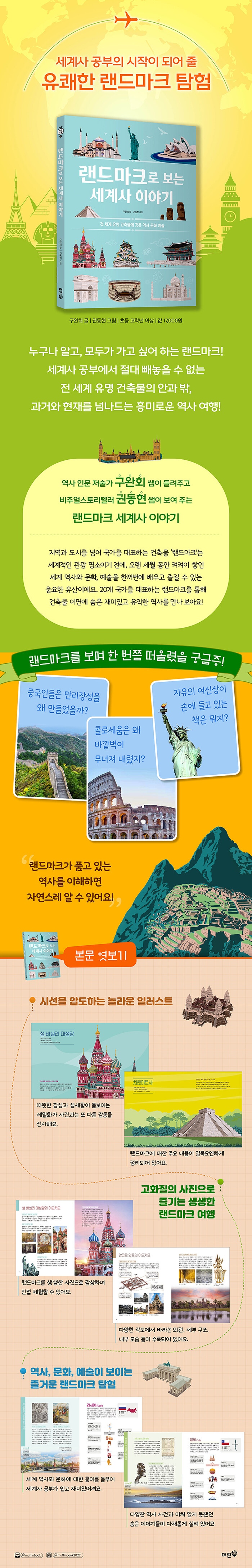 ÀÌ Ã¥ ¡¶·£µå¸¶Å©·Î º¸´Â ¼¼°è»ç À̾߱⡷´Â ¼¼°èÀûÀ¸·Î À¯¸íÇÑ ·£µå¸¶Å© 20°÷ÀÇ ¾ÈÆÆÀ» ¼Ó¼ÓµéÀÌ »ìÇÇ¸ç ±× ¾È¿¡ ±êµç ¿ª»ç¿Í ¹®È¸¦ Èï¹Ì·Ó°Ô µé·ÁÁÖ´Â ¾î¸°ÀÌ Àι® ±³¾ç¼ÀÔ´Ï´Ù. µÎ²®°í ¾î·Á¿î ¼¼°è»ç Ã¥Àº Àá½Ã Á¢¾î µÎ°í, ÀÌ Ã¥À» ÆîÃÄ º¸¼¼¿ä. Àß ¾È´Ù°í »ý°¢Çß´ø ·£µå¸¶Å©°¡ »õ·Ó°Ô º¸ÀÏ »Ó ¾Æ´Ï¶ó, ¼¼°è»ç°¡ ´õ ±Ã±ÝÇØÁö´Â ³î¶ó¿î °æÇèÀ» ¼±»çÇÒ °Å¿¹¿ä.