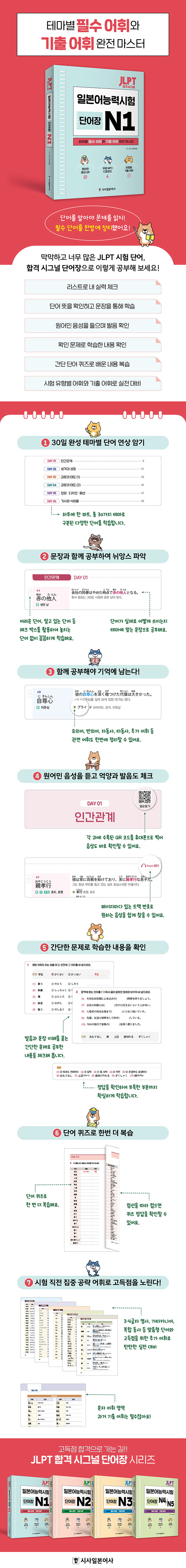 ÀϺ»¾î´É·Â½ÃÇè N1¿¡ ²À ÇÊ¿äÇÑ Çʼö ´Ü¾î¸¦ Å׸¶º°·Î ±¸ºÐÇÏ¿© ¹®Àå°ú ÇÔ²² ¾Ë±â ½±°Ô ¼ö·ÏÇϰí ÀÖ½À´Ï´Ù. º»¹®ÀÇ ¸ðµç ´Ü¾î´Â ¿ø¾î¹Î À½¼ºÀ» µéÀ¸¸ç ÇнÀ °¡´ÉÇϵµ·Ï QRÄÚµå ½ºÄµ ¹× ¹«·á ´Ù¿î·Îµå·Î À½¼ºÀ» Á¦°øÇÕ´Ï´Ù.