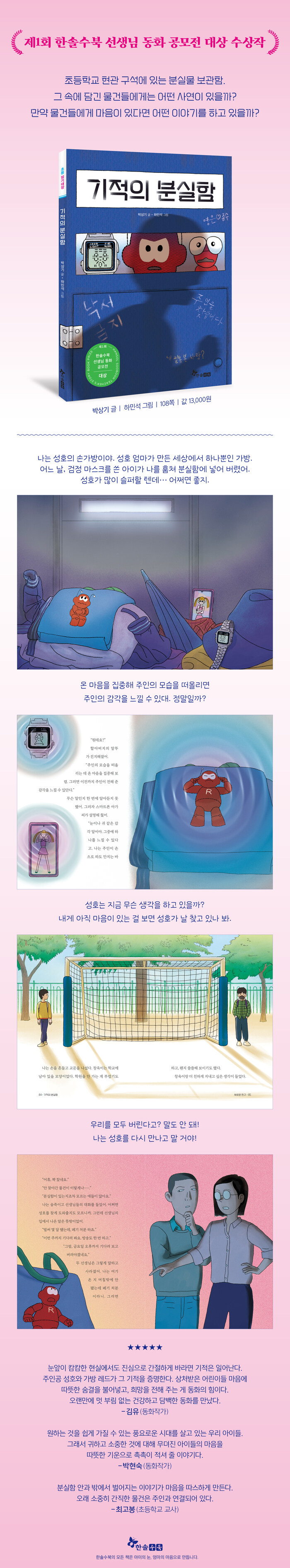 ¡¶±âÀûÀÇ ºÐ½ÇÇÔ¡·Àº Á¦1ȸ ÇѼּöºÏ ¼±»ý´Ô µ¿È °ø¸ðÀü ´ë»ó ¼ö»óÀÛÀÔ´Ï´Ù. ÃʵîÇб³ ±³»çÀÎ ÀúÀÚ´Â ºÐ½ÇÇÔÀ» ã¾Æ¿À´Â ´Ù¾çÇÑ ÇлýµéÀ» º¸¸é¼ ÀÌ À̾߱⸦ ±¸»óÇÏ°Ô µÇ¾ú½À´Ï´Ù. ·¹µå °¡¹æ°ú ¼ºÈ£ÀÇ ½ÃÁ¡ÀÌ ±³Â÷µÇ¸ç Àü°³µÇ´Â ÀÌ À̾߱â´Â ¾ÆÀ̵é·Î ÇÏ¿©±Ý ¹°°Ç¿¡ ´ëÇÑ °¨¼ö¼º°ú »ó»ó·ÂÀ» ³ôÀ̰í, µû¶æÇÑ °¨µ¿À» ÀüÇØ ÁÙ °ÍÀÔ´Ï´Ù.