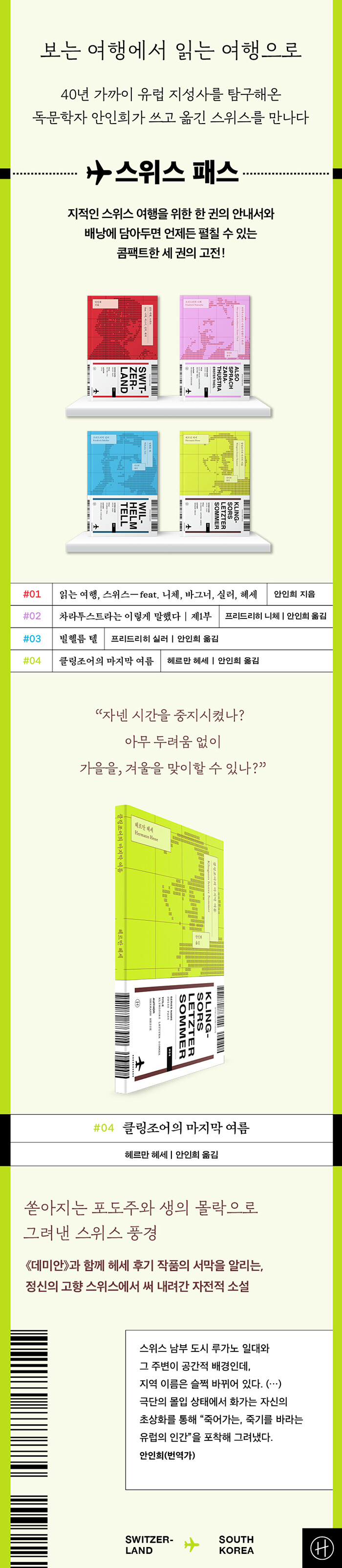 µ¥¹Ì¾È¡·°ú ÇÔ²² Çì¼¼ Èıâ ÀÛǰÀÇ ¼¸·À» ¾Ë¸®´Â ¼Ò¼³. ¡¶Å¬¸µÁ¶¾îÀÇ ¸¶Áö¸· ¿©¸§¡·ÀÌ Åº»ýÇÑ ½ºÀ§½º dz°æÀ» ±×¸° Çì¼¼ÀÇ ±×¸² ¼ö·Ï. Á¤½ÅÀûÀ¸·Î ¸Å¿ì Èûµç ½Ã±â¸¦ º¸³»°í ÀÖ´ø Çì¼¼ÀÇ ÀÚÀüÀû ÀÛǰ. ÁÖÀΰø ¡®Å¬¸µÁ¶¾î¡¯´Â ȲȦÇÔ°ú ¿å¸Á, âÁ¶ÀûÀÎ Èû°ú ±¤±â, ºÐÃâÇÏ´Â ¿¡³ÊÁö¿¡ ¸Å·áµÈ Ȱ¡·Î Àڽſ¡°Ô Á×À½ÀÇ ±×¸²ÀÚ°¡ ±×¸®¿ü´Ù´Â »ç½ÇÀ» ±ú´ÝÀÚ ³²Àº »ýÀ» ºÒÅ¿ö ÀÚÈ»óÀ» ±×¸°´Ù. ¡°¾î¼ ¿À¶ó, »ç¶ûÇÏ´Â »î¾Æ! ¾î¼ ¿À¶ó, »ç¶ûÇÏ´Â Á×À½¾Æ¡±¶ó°í ¿ïºÎ¢À¸¸ç Çã¶ôµÇÁö ¾ÊÀ» ¡®³»ÀÏ¡¯À̶ó´Â žçÀ¸·Î µ¹ÁøÇÑ´Ù. Ŭ¸µÁ¶¾î¸¦ µû¶ó°¡´Ùº¸¸é ¿Ö Çì¼¼ÀÇ ÀÛǰÀÌ ¿µ¿øÇÑ °íÀüÀÇ ¹Ý¿¿¡ ¿Ã¶ú´ÂÁö ´Ù½Ã±Ý ±ú´ÞÀ» ¼ö ÀÖ´Ù. Á¤½ÅÀû ¾ÈÁ¤À» À§ÇØ ±×¸²À» ±×¸®±â ½ÃÀÛÇÑ Çì¼¼°¡ ±×¸²À» ¾ó¸¶³ª »ç¶ûÇÏ´ÂÁöµµ ¿³º¼ ¼ö ÀÖ´Â ÀÛǰÀ¸·Î, 40³â °¡±îÀÌ À¯·´ Áö¼º»ç¸¦ ޱ¸Çؿ µ¶¹®ÇÐÀÚ ¾ÈÀÎÈñ°¡ Á¤±³ÇÏ°Ô ¹ø¿ªÇØ ¼±º¸ÀδÙ.