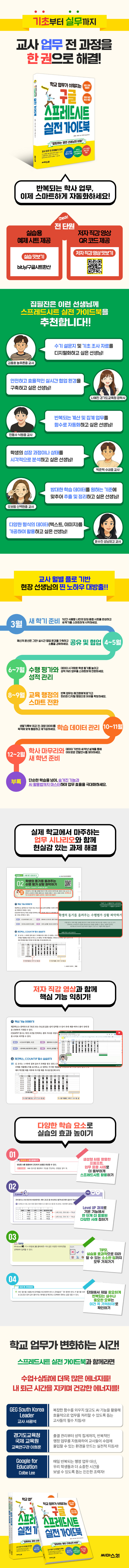»õ Çб⠽ÃÀÛ¿¡ ÇÊ¿äÇÑ ÇÐ±Þ ±âÃÊ ÀڷḦ ¸¸µå´Â ¾÷¹«ºÎÅÍ Çб⠸¶¹«¸® ¼ºÀû ÀÚµ¿ ¿Ï¼º ¾÷¹«±îÁö ÇöÀå¿¡¼ ±³»ç°¡ °¡Àå ÇÊ¿ä·Î ÇÏ´Â ³»¿ëµéÀ» Çб³ ¾÷¹« È帧¿¡ ¸ÂÃß¾î ü°èÀûÀ¸·Î ÇÑ ±Ç¿¡ ´ã¾Æ ±¸¼ºÇÏ¿´½À´Ï´Ù. Çлý Á¤º¸ °¡°ø(LEFT, REPLACE ÇÔ¼ö), ½Ç½Ã°£ Çù¾÷(µå·Ó´Ù¿î, ´ñ±Û), ¼öÇà Æò°¡ ¼ºÀû ó¸® (IF, LARGE, SMALL ÇÔ¼ö), Çлç ÀÏÁ¤ ÀÚµ¿È(DATE, GOOGLETRANSLATE ÇÔ¼ö) µî ±³»ç°¡ Çб³ ÇöÀå¿¡¼ Á¢ÇÏ´Â ½Ç»ýȰ ¾÷¹« »óȲÀ» ±¸±Û ½ºÇÁ·¹µå½ÃÆ®ÀÇ ÇÙ½É ±â´ÉÀ» Ȱ¿ëÇÏ¿© È¿À²ÀûÀ¸·Î ÇØ°áÇÏ´Â ¹æ¹ýÀ» ´Ü°èº°·Î »ó¼¼È÷ ´Ù·ì´Ï´Ù.