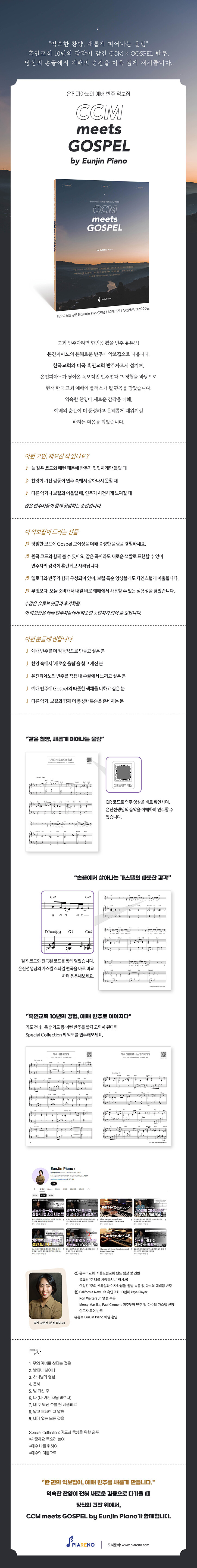¡¸CCM meets GOSPEL by Eunjin Piano¡¹, ÀÌ ¾Çº¸ÁýÀº ´Ü¼øÇÑ ¹ÝÁÖ ±³Àç°¡ ¾Æ´Õ´Ï´Ù. À¯Æ©ºê 'ÀºÁøÇǾƳë' ä³ÎÀ» ÅëÇØ ÀºÁø ¼±»ý´ÔÀÇ Å¹¿ùÇÑ À½¾ÇÀû ±íÀÌ¿Í µû¶æÇÑ °¨¼ºÀ» óÀ½ Á¢ÇÏ°í ±íÀÌ °ø°¨ÇÑ ÀúÈñ ÃâÆÇ»ç°¡, ÀÌ ÀºÇý·Î¿î ¹ÝÁÖ¸¦ ´õ ¸¹Àº ºÐ°ú ³ª´©°íÀÚ Àû±ØÀûÀ¸·Î ÃßÁøÇÏ¿© ź»ýÇÑ ¼ÒÁßÇÑ °á½ÇÀÔ´Ï´Ù.