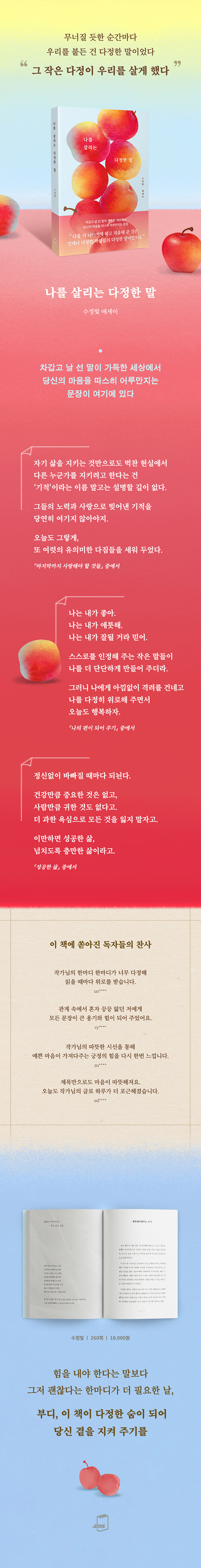 ´©±¸¿¡°Ô³ª ½±°Ô Áö¿öÁöÁö ¾Ê´Â ±â¾ïÀÌ ÀÖ´Ù. ±×·¸°Ô ³²Àº ÆÄÆíÀº ¶§·Î´Â ¸¶À½À» Èçµå´Â »óó°¡ µÇ°í, ¶Ç ¾î¶² ¼ø°£¿¡´Â ´Ü´ÜÇÑ ¹öÆÀ¸ñÀÌ µÇ¾î ¿ì¸®¸¦ »ì¸°´Ù. ¡º¼¸¥ÀÇ ±ÔÄ¢¡», ¡ºÀÌ·¸°Ô ¸»ÇØÁà¾ß°Ú´Ù¡», ¡ºÀÌÁ¦ °ð Çà¿îÀÌ ³Ê¸¦ ã¾Æ°¥ °Å¾ß¡»¿¡ À̾î Ãâ°£µÈ ¼öÁ¤ºû ÀÛ°¡ÀÇ ³× ¹øÂ° ¿¡¼¼ÀÌ ¡º³ª¸¦ »ì¸®´Â ´ÙÁ¤ÇÑ ¸»¡»Àº ±× ÈçÀûÀÇ °áÀ» µû¶ó°¡, »óó¿Í À§·Î°¡ °øÁ¸ÇÏ´Â ±â¾ïÀÇ ÀÚ¸®¸¦ ´ã´ãÈ÷ ¹Ù¶óº¸¸ç ¸»ÇÑ´Ù. °á±¹ ¿ì¸®¸¦ ´Ù½Ã »ì¾Æ°¡°Ô ÇÏ´Â ÈûÀº °ÅâÇÑ ´ÙÁüÀÌ ¾Æ´Ï¶ó, ¸ÅÀÏ ¹Ýº¹µÇ´Â ¼Ò¼ÒÇÑ ÀÏ»ó ¼Ó¿¡¼ °Ç³×´Â ´ÙÁ¤ÇÑ ¸»À̶ó°í.