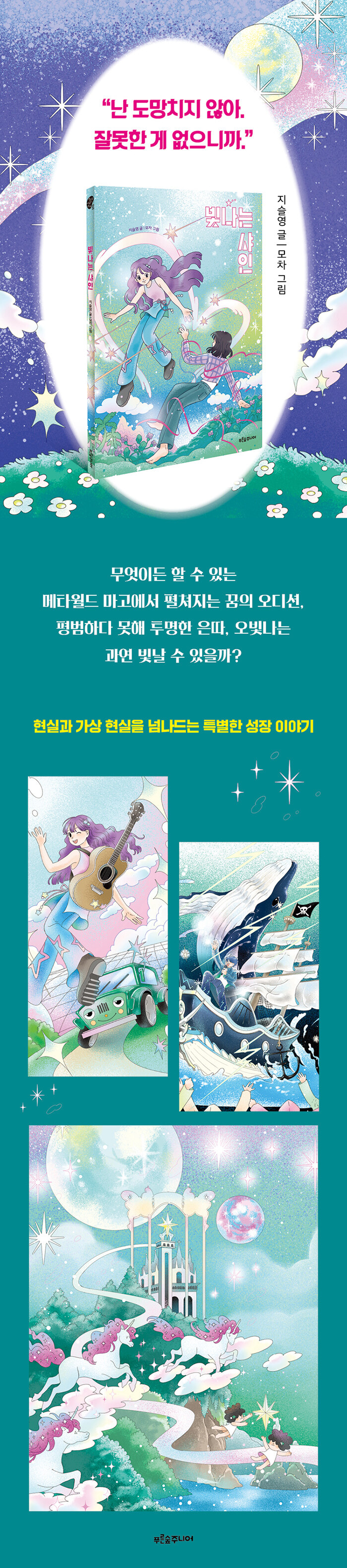 ¡ººû³ª´Â »þÀΡ»Àº SF, ¿ª»ç µî À帣¸¦ ³Ñ³ªµé¸ç Èï¹ÌÁøÁøÇÑ À̾߱⠼¼°è¸¦ ÆîÃÄ ¿Â Áö½½¿µ ÀÛ°¡ÀÇ ÀåÆí µ¿È´Ù. À̹ø ÀÛǰ¿¡¼ ÀÛ°¡´Â ¼·Î ³Ê¹«³ª ´Ù¸¥ Çö½Ç ¼¼°è¿Í °¡»ó ¼¼°è¸¦ ÀÚÀ¯·ÎÀÌ ¿À°£´Ù. Çö½Ç¿¡¼ÀÇ ¹®Á¦°¡ °¡»ó¿¡¼ Ç®¾îÁö±âµµ, °¡»ó ¼Ó »ç°ÇÀÌ Çö½Ç¿¡¼ ºÒ°ÅÁö±âµµ ÇÑ´Ù. ÀÛǰ ¼Ó ¾ÆÀ̵éÀº ¿©·¯ ½Ã°ø°£¿¡¼ Àú¸¶´Ù »óó¿Í ÁÂÀý, °ü°èÀÇ ¾î·Á¿ò¿¡ ºÎµúÈ÷Áö¸¸, ¹®Á¦¸¦ ¶È¹Ù·Î ¹Ù¶óº¸¸ç ÇìÃÄ ³ª°£´Ù. Çö½Ç°ú °¡»ó ¼¼°è, ¾îµð¼µç ¾î¶»°Ô ÇØ¾ß ½º½º·Î ´ç´çÇÑ »ç¶÷ÀÌ µÉÁö ±í°Ô °í¹ÎÇÑ´Ù. ±×·¯¸é¼ ¾ÆÀ̵éÀº ¼ºÀåÇÑ´Ù. ÀÌ ÀÛǰÀº ÈûµéÁö¸¸ ¹à°Ô ºû³ª´Â ¿ì¸® ¾ÆÀ̵éÀÇ ¼ºÀåÅëÀ» ¸ÞŸ¹ö½º À½¾Ç ¿Àµð¼ÇÀ̶ó´Â Ʋ¿¡ ¹«°ÌÁö ¾Ê°Ô ´ã¾Ò´Ù.