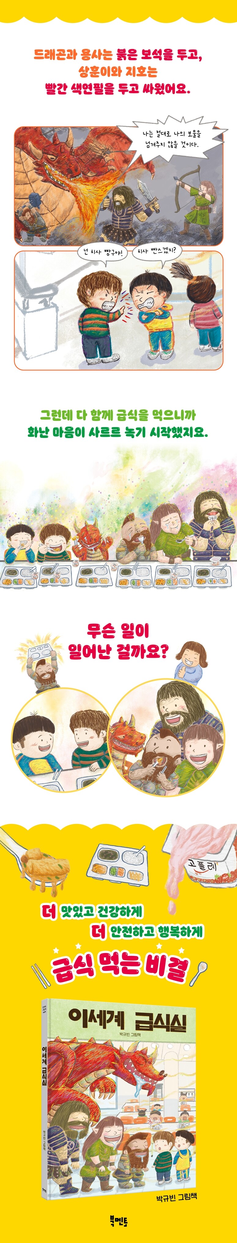 À̼¼°è µå·¡°ï°ú ¿ë»çµéÀº ¾ó¶³°á¿¡ »óÈÆÀÌ¿Í ÁöÈ£³× Çб³ ±Þ½Ä½Ç¿¡ ¿À°Ô µÇ¾ú¾î¿ä. À̰÷¿¡¼ ¾î¶»°Ô ÇØ¾ß ÇÒÁö ¸ô¶ó ¾î¸®µÕÀýÇØ ÀÖÀ» ¶§, ¼±»ý´ÔÀÌ Å« ¼Ò¸®·Î ÁÙÀ» ¼¶ó°í ¸»ÇÕ´Ï´Ù. ±×¶§ºÎÅÍ µå·¡°ï°ú ¿ë»çµéÀº ±Þ½ÄÀ» ¸Ô±â À§ÇÑ ±âº» ±ÔÄ¢À» Çϳª¾¿ ¹è¿ì°Ô µÇÁö¿ä. ¼Õ ¾Ä±â, Â÷·ÊÂ÷·Ê ÁÙ ¼±â, ÀÜ¹Ý Ã³¸®Çϱ⠵îµî µå·¡°ï°ú ¿ë»çµéÀÌ ±Þ½Ä ¸Ô±â Àü, ¸ÔÀ» ¶§, ¸ÔÀº ÈÄ ÇÏ´Â ÇൿÀ» º¸¸ç ¾î¸°ÀÌ µ¶ÀÚµéÀº ÀÚ¿¬½º·´°Ô ±Þ½Ä ¿¹ÀýÀ» ÀÍÈú ¼ö ÀÖ´ä´Ï´Ù. ¶ÇÇÑ, ´õ ¸ÀÀÖ°Ô ´õ °Ç°ÇÏ°Ô ´õ ÇູÇÏ°Ô ±Þ½ÄÀ» ¸Ô´Â ÃÖ°íÀÇ ºñ°áÀº ¹Ù·Î ±Þ½Ä ±ÔÄ¢°ú ¿¹ÀýÀ» ÁöŰ´Â °ÍÀ̶ó´Â °Íµµ ±ú´Ý°Ô µÇÁö¿ä.
