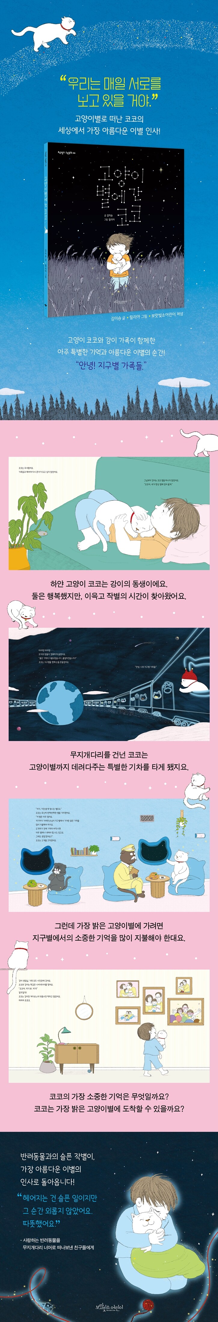 ¡¶°í¾çÀ̺°¿¡ °£ ÄÚÄÚ¡·´Â ¹Ý·Áµ¿¹°°úÀÇ À̺°ÀÌ ´ÜÁö ½½ÇÄÀ¸·Î ±×Ä¡Áö ¾Ê°í, ¾Æ¸§´Ù¿î À̺°ÀÇ ¿©Á¤ÀÌ µÉ ¼ö ÀÖÀ½À» ¾Ë·Á ÁÖ´Â µû¶æÇÑ ±×¸²Ã¥ÀÌ¿¡¿ä. ¹«Áö°³´Ù¸®¸¦ °Ç³Í ¹Ý·Áµ¿¹°ÀÇ ¿©Á¤ÀÌ ¿Ü·ÓÁö ¾Ê±â¸¦ ¹Ù¶ó´Â ÀÛ°¡ÀÇ ¸¶À½ÀÌ ´À²¸ÁöÁö¿ä. ¹«Áö°³´Ù¸® ³Ê¸Ó¿¡ Àִ Ưº°ÇÑ ±âÂ÷¸¦ ź °í¾çÀÌ ÄÚÄÚ´Â °¡Àå ¹à°Ô ºû³ª´Â °í¾çÀ̺°¿¡ °¡°í ½Í¾î¿ä. º°À» ÁÁ¾ÆÇÏ´Â °À̰¡ °¡Àå ½±°Ô ãÀ» ¼ö ÀÖµµ·Ï, Çϴÿ¡¼ ¾ðÁ¦³ª °À̸¦ ¹à°Ô ºñÃç ÁÙ ¼ö ÀÖµµ·Ï ¸»ÀÌ¿¡¿ä. ÇÏÁö¸¸ °¡Àå ¹àÀº º°±îÁö °¡·Á¸é Áö±¸º°¿¡¼ °¡Á®¿Â ÁÁÀº ±â¾ïÀ» ¸¹ÀÌ ÁöºÒÇØ¾ß ÇÑ´ë¿ä. ±â¾ïÀÌ ¹Ù´Ú³ª¸é ¾Æ¹« º°¿¡³ª ³»·Á¾ß ÇÒ ¼öµµ ÀÖ°í¿ä. ÁÁÀº ±â¾ïÀ» Çϳª¾¿ ¶°¿Ã¸®´Â ÄÚÄÚ. ÄÚÄÚ°¡ ¶°¿Ã¸° ÁÁÀº ±â¾ïµéÀº Áö±¸º°¿¡ ³²¾Æ ÀÖ´Â °¡Á·µé¿¡°Ô ¼±»çÇÏ´Â ¾Æ¸§´Ù¿î ÀÛº° Àλçó·³ ¿ì¸® ¸¶À½¿¡ ¿©¿îÀ» ³²±é´Ï´Ù. ÄÚÄÚÀÇ ±â¾ïµéÀ» ÅëÇØ ³ªÀÇ ¹Ý·Áµ¿¹°°ú ½×Àº ÇູÇß´ø Ãß¾ïµéÀ» ¶°¿Ã·Á º¸¼¼¿ä. Áö±Ý ÀÌ ¼ø°£ÀÌ, Èʳ¯ ¶°¿Ã¸± °¡Àå ÁÁÀº ±â¾ïÀÇ ¼ø°£ÀÌ µÉ ¼öµµ ÀÖ´Ù´Â °É ÀØÁö ¸»¾Æ¿ä.