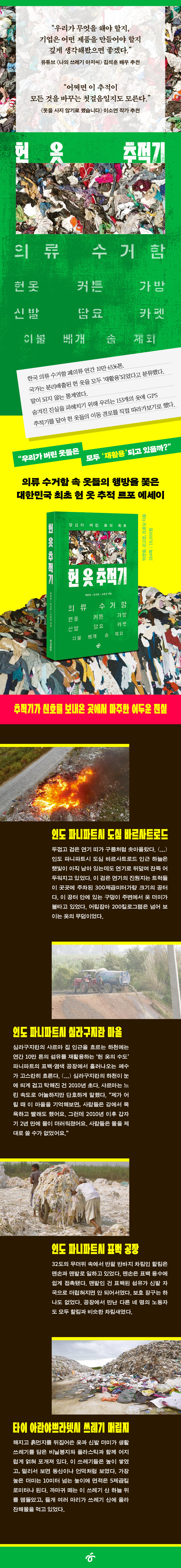 ¡¶Çå ¿Ê ÃßÀû±â¡·´Â ¡´ÇѰܷ¹21¡µ ¼Ò¼ÓÀÇ ¼¼ ÀúÀÚ°¡ ÀÇ·ù ¼ö°ÅÇÔ ¿ÊµéÀÇ ¡®¾Ë·ÁÁöÁö ¾ÊÀº Áø½Ç¡¯À» ÃßÀûÇÑ ±â·ÏÀ» ´ãÀº ¸£Æ÷ ¿¡¼¼ÀÌ´Ù. 153°³ÀÇ ÃßÀû±â¸¦ ¿Ê¿¡ ºÎÂøÇØ Àü±¹ ÀÇ·ù ¼ö°ÅÇÔ¿¡ ÅõÀÔÇϰí, 4°³¿ù°£ ¿ÊµéÀÌ ¾îµð·Î °¡´ÂÁö ³¡±îÁö ÂѾҴÙ. ¡®¾²·¹±â ¾ÆÀú¾¾¡¯ ¹è¿ì ±è¼®ÈÆÀÇ °ËÀº»ö ¹ÙÁö¿Í ¾Æµ¿¿ë ¿îµ¿È, ¡®È¯°æ¿¡ Áø½ÉÀΡ¯ ¹è¿ì ¹ÚÁøÈñÀÇ ÀçŶ°ú Ä«µð°Ç, Á¦·Î¿þÀ̽ºÆ® °¡°Ô¸¦ ³½ ¹æ¼ÛÀÎ ÁÙ¸®¾ÈÀÇ Æ¼¼ÅÃ÷, ¹êµå Å©¶óÀ×³Ó ÇѰæ·ÏÀÇ °ø¿¬¿ë ¼ÅÃ÷, ¡¶¿ÊÀ» »çÁö ¾Ê±â·Î Çß½À´Ï´Ù¡·ÀÇ ÀúÀÚ À̼ҿ¬ÀÇ ½º¿þÅ͵µ ±âºÎ¹Þ¾Ò´Ù. ¡´ÇѰܷ¹21¡µ 1545È£ ¡®´ç½ÅÀÌ ¹ö¸° ¿ÊÀÇ ÃÖÈÄ¡¯¿¡ ´ã±ä ±× °á°ú´Â Ãæ°ÝÀûÀ̾ú´Ù. Çѱ¹Àº ¼¼°è Áß°íÀÇ·ù ¼öÃâ 5À§ ±¹°¡Áö¸¸, ±×µ¿¾È ¿ì¸®°¡ ¹ö¸° ¿ÊÀÇ ½ÇÁ¦ Çà¹æÀº º£ÀÏ¿¡ ½Î¿© ÀÖ¾ú´Ù. °ø½Ä Åë°è´Â ¡®100% ÀçȰ¿ë¡¯ÀÌ¶ó ¸»ÇØ¿ÔÁö¸¸, Á¤ÀÛ ÃßÀû±â°¡ µµÂøÇÑ °÷Àº ÀεµÀÇ ºÒ¹ý ¼Ò°¢Àå, ŸÀÌÀÇ ¾²·¹±â »ê, º¼¸®ºñ¾ÆÀÇ È²¹«Áö¿´´Ù.