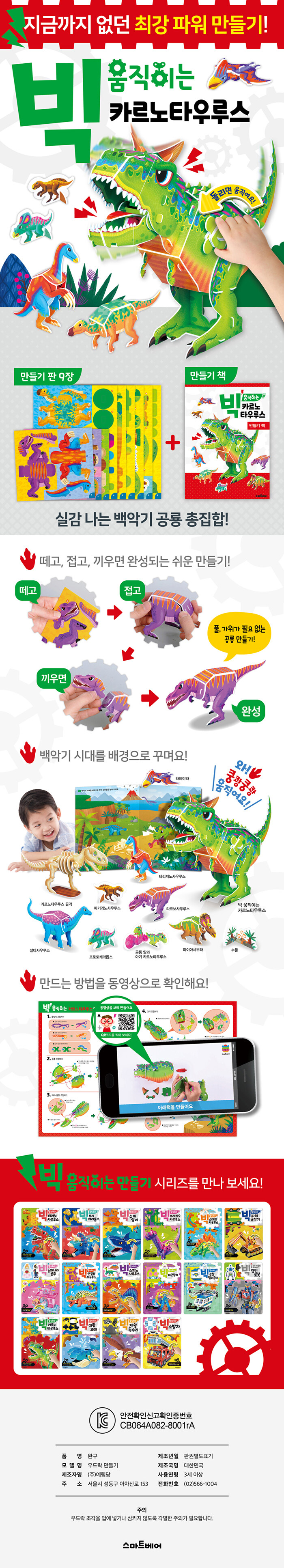 ³»°¡ ¸¸µç Ä«¸£³ëŸ¿ì·ç½º°¡ ÄôÄçÄôÄç ¿òÁ÷¿©¿ä! ¸Ó¸®¿¡ Ȳ¼Ò »ÔÀÌ ³ °Å´ëÇÑ À°½Ä °ø·æ Ä«¸£³ëŸ¿ì·ç½º¸¦ ¡´ºò ¿òÁ÷ÀÌ´Â ¸¸µé±â¡µ ½Ã¸®Áî·Î ¸¸³ª º¸¼¼¿ä. ¡´ºò ¿òÁ÷ÀÌ´Â Ä«¸£³ëŸ¿ì·ç½º¡µ´Â µ¹¸²ÃàÀÌ µ¹¾Æ°¡´Â ¿ø¸®¸¦ ÀÌ¿ëÇØ ÀÔ°ú ²¿¸®°¡ ¿òÁ÷À̵µ·Ï ¼³°èÇÏ¿© ¾ÆÀ̵鿡°Ô ¸¸µå´Â Àç¹Ì¿Í Áñ°Å¿òÀ» ÁÖ°í, °úÇÐÀû »ç°í´Â ¹°·Ð âÀǷ°ú ÀÔüÀûÀÎ »ç°í·ÂÀ» Ű¿ì´Â µ¥ µµ¿òÀ» ÁÝ´Ï´Ù. ¶ÇÇÑ Æò¸é ±×¸²ÀÌ ÀÔü ¸ðÇüÀ¸·Î ¹Ù²î´Â °úÁ¤À» °æÇèÇÏ¸ç µµÇü°ú °ø°£ °³³äÀ» ÀÎÁöÇÏ°Ô µË´Ï´Ù. ¡´ºò ¿òÁ÷ÀÌ´Â ¸¸µé±â¡µ ½Ã¸®Áî´Â ¸¸µé±â¸¦ óÀ½ ½ÃÀÛÇÏ´Â ¾ÆÀ̵µ ¶¼°í, Á¢°í, ³¢¿ì´Â ºñ±³Àû °£´ÜÇÑ ¹æ¹ýÀ¸·Î ¿Ï¼ºµµ ³ôÀº ÀÔü ¸ðÇüÀ» ¸¸µé¸ç Àڽۨ°ú ¼ºÃë°¨À» ´À³¥ ¼ö ÀÖ½À´Ï´Ù. °¡À§¸¦ »ç¿ëÇÏÁö ¾Ê¾Æ Æí¸®Çϰí, ¸¸µé±â Àç·á¸¦ ÁغñÇØ¾ß ÇÏ´Â ¹ø°Å·Î¿òÀÌ ¾ø¾î °£ÆíÇÑ ³îÀÌ ½Ã°£À» °¡Áú ¼ö ÀÖÁö¿ä. ºò ¿òÁ÷ÀÌ´Â Ä«¸£³ëŸ¿ì·ç½º ¿Ü¿¡ Ÿ¸£º¸»ç¿ì·ç½º, Å׸®Áö³ë»ç¿ì·ç½º µî ¹é¾Ç±â ½Ã´ë °ø·æµé°ú ÇÔ²² Ä«¸£³ëŸ¿ì·ç½º °ñ°Ý, °ø·æ ¾Ë°ú ¾Æ±â Ä«¸£³ëŸ¿ì·ç½º±îÁö 11Á¾ÀÌ µé¾î ÀÖ¾î ´Ù¾çÇÑ ³îÀÌ È°µ¿ÀÌ °¡´ÉÇÕ´Ï´Ù. Áö±Ý±îÁö ¾ø´ø ÃÖ° ÆÄ¿ö ¸¸µé±â Ã¥À¸·Î ³î¶ó¿î °ø·æÀÇ ¼¼°è¸¦ üÇèÇϼ¼¿ä!