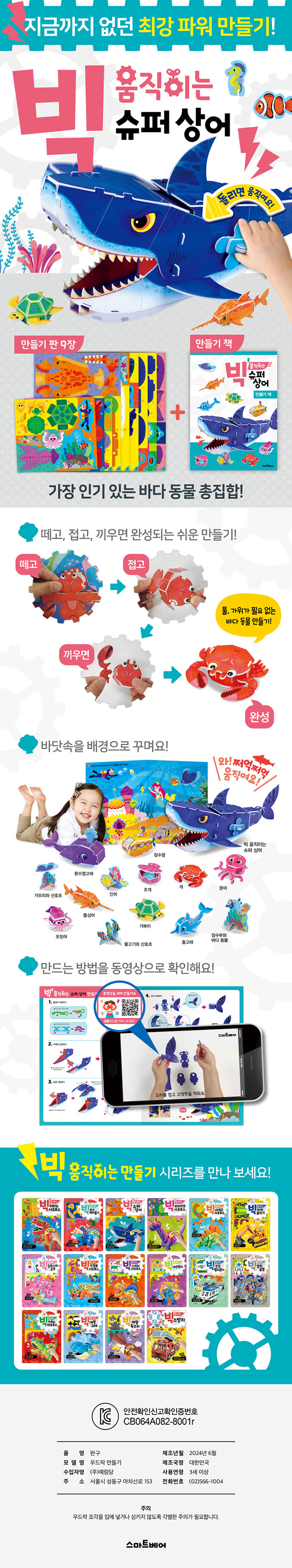 ¼¾ï¼¾ï! ³»°¡ ¸¸µç ½´ÆÛ »ó¾î°¡ »ç³ª¿î ÀÔÀ» ¿òÁ÷ÀÎ´Ù¸é ¾î¶³±î? <ºò ¿òÁ÷ÀÌ´Â ½´ÆÛ »ó¾î>´Â ¿ìµå¶ô ¼ÒÀçÀÇ ¸¸µé±â ÆÇ¿¡¼ Á¶°¢À» ÅåÅå ¶¼¾î ³» ½ï½ï ³¢¿ö ¸¸µå´Â ÀÔü ¸ðÇü ¸¸µé±â Ã¥ÀÌ´Ù. ÃàÀÌ µ¹¾Æ°¡´Â ¿ø¸®¸¦ ÀÌ¿ëÇØ »ó¾îÀÇ ÀÔÀ» ¿òÁ÷À̵µ·Ï ¼³°èÇÏ¿© ¾ÆÀ̵鿡°Ô °úÇÐÀû »ç°í´Â ¹°·Ð âÀǷ°ú ÀÔüÀûÀÎ »ç°í·ÂÀ» Ű¿ì´Â µ¥ µµ¿òÀ» ÁØ´Ù. ¶ÇÇÑ Æò¸é ±×¸²ÀÌ ÀÔü ¸ðÇüÀ¸·Î ¹Ù²î´Â °úÁ¤À» °æÇèÇÏ¸ç ¾ÆÀ̵éÀº µµÇü°ú °ø°£ °³³äÀ» ÀÎÁöÇÏ°Ô µÈ´Ù.