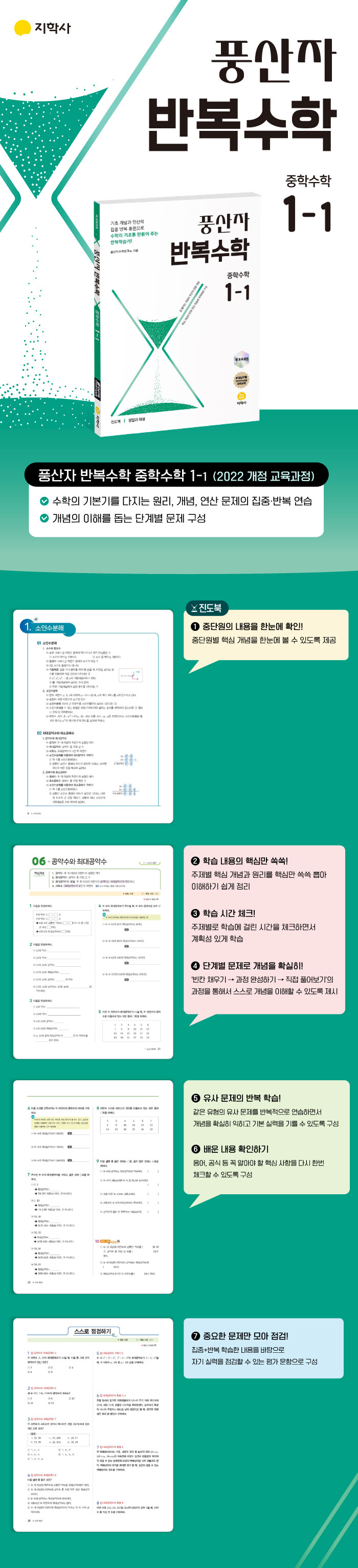 ¡®Ç³»êÀÚ ¹Ýº¹¼öÇÐ ÁßÇмöÇÐ 1-1 (2022 °³Á¤ ±³À°°úÁ¤)¡¯Àº ¿¬»ê ¹Ýº¹ ¿¬½ÀÀ¸·Î ±âÃʸ¦ ưưÇÏ°Ô ¸¸µé¾î ÁÖ´Â ±âº»ÇнÀ¼ÀÌ´Ù. ÇÙ½É °³³ä Á¤¸®¿Í ´Ü°èº° ¹®Á¦·Î °³³äÀ» È®½ÇÈ÷ ÀÍÈ÷°í, À¯»ç ¹®Á¦ÀÇ ¹Ýº¹ ¿¬½ÀÀ» ÅëÇØ ±âº» ½Ç·ÂÀ» ´ÙÁö¸ç, ½º½º·Î Á¡°Ë ¹®Á¦¸¦ ÅëÇØ Àڱ⠽ǷÂÀ» Á¡°ËÇÒ ¼ö ÀÖµµ·Ï ÇÏ¿´´Ù.
