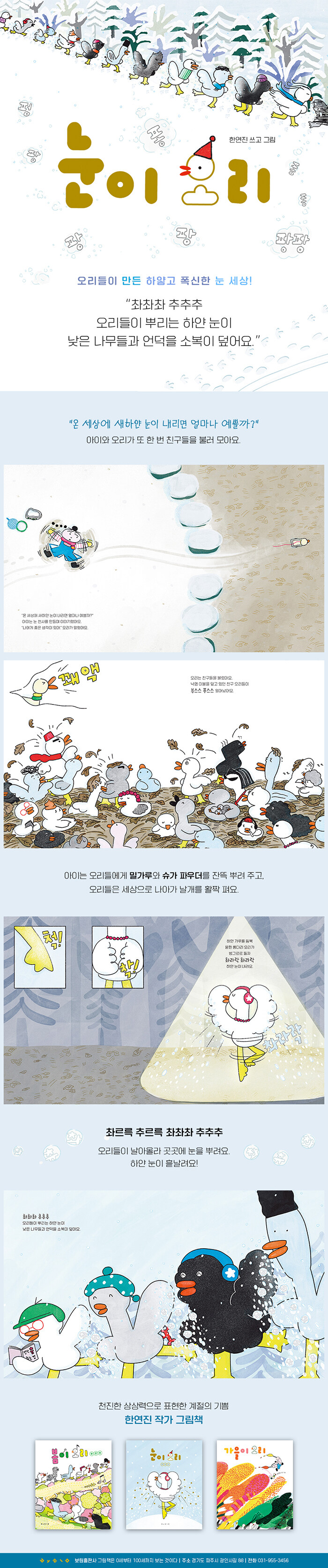 ¡¶°¡À»ÀÌ ¿À¸®¡·¿Í ¡¶º½ÀÌ ¿À¸®¡·¿¡ À̾î ÇÑ¿¬Áø ÀÛ°¡ÀÇ ¼¼ ¹øÂ° ¿À¸® À̾߱Ⱑ À̹ø °Ü¿ï ã¾Æ¿É´Ï´Ù. ÀüÀÛ°ú ¸¶Âù°¡Áö·Î ¡¶´«ÀÌ ¿À¸®¡·µµ ´Ù¾çÇϰí Àç¹Ì³ ÀǼº¾î, ÀÇž »ç¿ëµÇ¸ç ½Å³ª°í °æÄèÇÑ °¨»óÀ» ÀüÇÕ´Ï´Ù. Ã¥À» ÀÐÀ» ¶§ ³ë·¡ÇÏ´Â µíÇÑ ±âºÐÀ» ´À³¥ ¼ö ÀÖ½À´Ï´Ù. ¶ÇÇÑ ¾ÆÀÌÀÇ ÀÛÀº »ó»óÀÌ ¿Â ¼¼»óÀ» º¯È½Ã۰í, ÀÌ °úÁ¤¿¡¼ µ¸º¸ÀÌ´Â ¿À¸®µé°úÀÇ ¿ìÁ¤°ú Çùµ¿ÀÌ ¿ì¸® ÁÖº¯À» »ìÆìº¸°Ô ÇÕ´Ï´Ù.