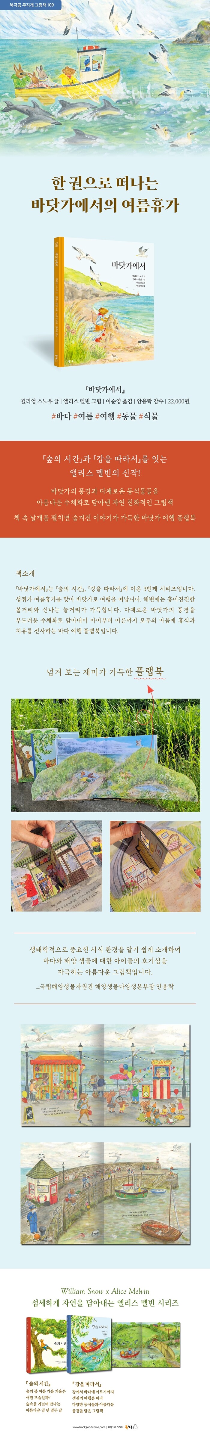 ¡º¹Ù´å°¡¿¡¼¡»´Â ÀÏ ³â ¿µÎ ´Þ ¾Æ¸§´Ù¿î ½£ÀÇ ¸ð½ÀÀ» ´ã¾Æ³½ ¡º½£ÀÇ ½Ã°£¡»°ú °À» µû¶ó¼ ¹Ù´Ù¿¡ À̸£±â±îÁöÀÇ ¿©ÇàÀ» ´ã¾Æ³½ ¡º°À» µû¶ó¼¡»ÀÇ ÈļÓÀÛÀÔ´Ï´Ù. ÀÛ°¡°¡ ÀÚ¿¬¿¡¼ Á÷Á¢ ¸Ó¹°¸ç ½£°ú °ÀÇ ¸ð½ÀÀ» ¾Æ¸§´Ù¿î ¼öäȷΠ´ã¾Æ³½ ÀüÀÛµé°ú ¸¶Âù°¡Áö·Î Ã¥ÀåÀ» ¿¸é À̹ø¿¡´Â ¹Ù´å°¡ÀÇ Ç³°æÀÌ »ý»ýÇÏ°Ô ÆîÃÄÁý´Ï´Ù. ÇØº¯À» µÑ·¯º¸¸é Èï¹ÌÁøÁøÇÑ º¼°Å¸®¿Í ½Å³ª´Â ³î°Å¸®°¡ °¡µæÇÕ´Ï´Ù. ÈÞ°¡¸¦ ¸Â¾Æ ¹Ù´å°¡·Î ¿©ÇàÀ» ¶°³ »ýÁã´Â ¸ÅÀÏ »õ·Î¿î °÷À» ŽÇèÇÕ´Ï´Ù. ´Ùä·Î¿î ¹Ù´å°¡ÀÇ Ç³°æ ¼Ó¿¡¼ ´À±ßÇÏ°Ô ÈÞ°¡¸¦ Áñ±â´Â »ýÁãÀÇ ¸ð½ÀÀ» ¹Ù¶óº¸°í ÀÖÀ¸¸é ÇÔ²² ¹Ù´å°¡¿¡ ¸Ó¹°°í ÀÖ´Â °Íó·³ ¸¶À½ÀÌ Æí¾ÈÇØÁý´Ï´Ù. ¡º¹Ù´å°¡¿¡¼¡»´Â È£±â½É °¡µæÇÑ ¾ÆÀ̵é»Ó¸¸ ¾Æ´Ï¶ó Èú¸µÀÌ ÇÊ¿äÇÑ ¾î¸¥±îÁö ¸ðµÎÀÇ ¸¶À½À» »ç·ÎÀâ´Â ÀÚ¿¬ Ä£ÈÀûÀÎ ±×¸²Ã¥ÀÔ´Ï´Ù.