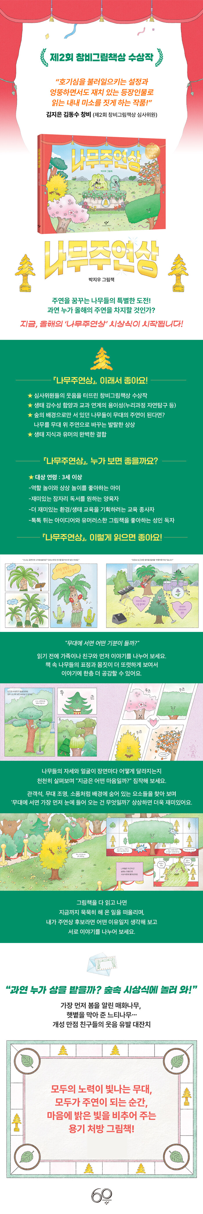 Á¦2ȸ âºñ±×¸²Ã¥»ó ÀÀ¸ðÀÛ 586Æí °¡¿îµ¥ °¡ÀÛ ¼ö»óÀÛÀ¸·Î ¼±Á¤µÈ ¡º³ª¹«ÁÖ¿¬»ó¡»Àº ½£¼Ó¿¡¼ ¿¸®´Â ¡®³ª¹«ÁÖ¿¬»ó¡¯ ½Ã»ó½ÄÀ̶ó´Â À¯ÄèÇÑ ¼³Á¤¿¡¼ Ãâ¹ßÇÑ ±×¸²Ã¥ÀÌ´Ù. ³ª¹«µéÀÌ ¡®ÁÖ¿¬»ó¡¯ È帷Π¼Ò°³µÇ°í, ÃàÇÏ ¹«´ë¿Í ½Ã»óÀÌ À̾îÁö´Â ±¸¼ºÀÌ ½ÇÁ¦ ½Ã»ó½ÄÀ» ¶°¿Ã¸®°Ô Çϸç À̾߱⿡ °æÄèÇÑ ¸®µëÀ» ´õÇÑ´Ù. ¡°È£±â½ÉÀ» ºÒ·¯ÀÏÀ¸Å°´Â ¼³Á¤°ú ¾û¶×Çϸ鼵µ ÀçÄ¡ ÀÖ´Â µîÀåÀι°ÀÇ Ç¥Çö ´öºÐ¿¡ Àд ³»³» ¹Ì¼Ò°¡ Áö¾îÁö´Â ÀÛǰ¡±(½É»çÆò)À̶ó´Â È£Æòó·³, ¡º³ª¹«ÁÖ¿¬»ó¡»Àº Àͼ÷ÇÑ ÀÚ¿¬À» ½Ã»ó½ÄÀÇ ÁÖÀΰøÀ¸·Î ÀüȯÇÑ ¹ß»óÀÌ µ¸º¸ÀÌ´Â ÀÛǰÀÌ´Ù. ³ª¹«µéÀÇ ½Ã»ó½ÄÀ̶ó´Â Âü½ÅÇÑ »ó»óÀ» ÅëÇØ, ¿ì¸®°¡ Àϻ󿡼 ¹«½ÉÄÚ Áö³ªÃÄ ¿Â ÀÚ¿¬ÀÇ ¿ªÇÒ°ú °¡Ä¡¸¦ ´Ù½Ã ¹Ù¶óº¸°Ô ÇÑ´Ù.