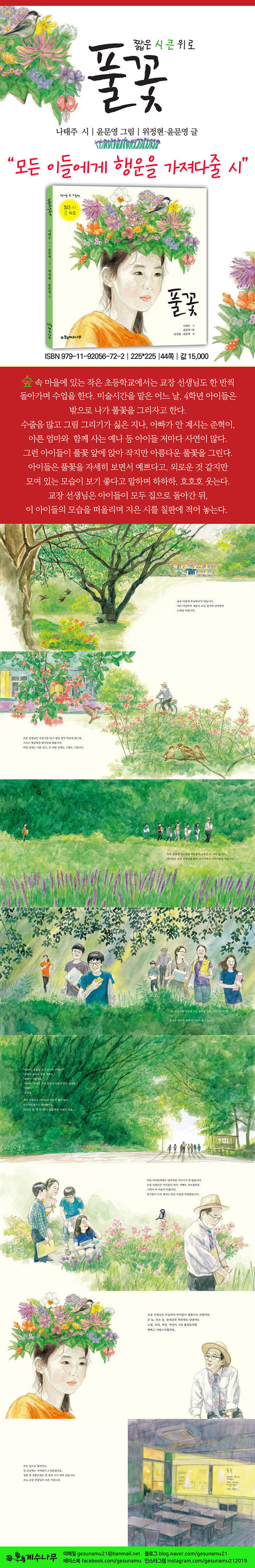 ½ÃÀÎÀº ÃʵîÇб³ ±³ÀåÀ¸·Î ±Ù¹«ÇÒ ¶§, Å©°í ÀÛ°í µé¾¦³¯¾¦ Á¦¸Ú´ë·Î ÇǾî ÀÖ´Â Ç®²Éµé¿¡¼ ¾ÆÀÌÀÇ ¸ð½ÀÀ» ã¾Æ³Â´Ù. »ó´ëÀû °áÇÌÀ¸·Î ÀÚÁ¸°¨ÀÌ ¶³¾îÁø ±× ¾ÆÀ̵鿡°Ô ¡®³Ê´Â Á¸Àç ÀÚü¸¸À¸·Îµµ ÃæºÐÇÑ °¡Ä¡°¡ ÀÖÀ¸¸ç »ç¶û½º·´°í ¼ÒÁßÇÑ »ç¶÷¡¯À̶ó´Â ¸»À» ÀüÇϱâ À§ÇØ ÀÌ ½Ã¸¦ ½è´Ù. ÀÚ±ØÀûÀÌ°í °¨°¢ÀûÀÎ ¸»°ú º¼°Å¸®°¡ ³ÑÃijª´Â ¼¼»ó, ºü¸¥ ¼Óµµ·Î ¹Ù²î´Â ÁÖº¯ ȯ°æ ¼Ó¿¡¼ ÀÚ¼¼È÷ º¸°í ¿À·¡ º¸¸é ¿¹»Ú°í »ç¶û½º·¯¿î ´ë»óÀÌ ¹Ù·Î ¡®³Ê¡¯¿©¼ °¨µ¿ÀÌ Å©´Ù.