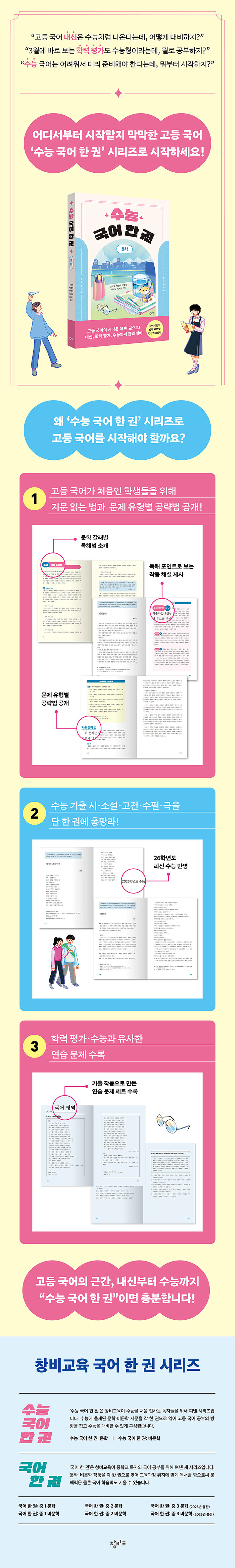 ¡®¼ö´É ±¹¾î ÇÑ ±Ç¡¯Àº ¼ö´É¿¡ ÃâÁ¦µÈ ¹®ÇС¤ºñ¹®ÇÐ Áö¹®À» °¢ ÇÑ ±ÇÀ¸·Î ¿«¾ú´Ù. ÃÖ±Ù 10¿© ³âÀÇ ±âÃâÀ» ºÐ¼®ÇÏ¿© Ãֽмö´ÉÀÇ °æÇâÀ» Àß º¸¿© ÁÙ ¼ö ÀÖ´Â Áö¹®À» °ñ¶ú´Ù. °íµîÇб³ ±¹¾î °øºÎ´Â °á±¹ ¼ö´ÉÀ» ÇâÇØ Àֱ⿡ ¼ö´ÉÀ» öÀúÈ÷ ºÐ¼®ÇÑ´Ù¸é °íµîÇб³ ±¹¾î °øºÎÀÇ ´Ù¸¥ µÎ ÃàÀÎ ³»½Å°ú Àü±¹ ¿¬ÇÕ Çз Æò°¡¿¡µµ ´ëºñÇÒ ¼ö ÀÖ´Ù. À̸¦ À§ÇØ ¡®¼ö´ÉÇü ¹®Á¦¡¯¿¡ ÇлýµéÀÌ Àͼ÷ÇØÁú ¼ö ÀÖµµ·Ï ´ëÇ¥ ±âÃâ¹®Á¦¿Í ¿ÀÁ÷ ¡®¼ö´É ±¹¾î ÇÑ ±Ç¡¯À» À§ÇØ ÁýÇÊµÈ »ó¼¼ÇÑ ÇØ¼³À» ¼ö·ÏÇß´Ù. ±âÃâ Áö¹®À» ±â¹ÝÀ¸·Î ÇÏ¿© ¼ö´É°ú À¯»çÇÏ°Ô ±¸¼ºÇÑ ¿¬½À ¹®Á¦µµ Á¦°øÇØ, ÇлýµéÀÌ ¼ö´É°ú °íµîÇб³ ±¹¾î °øºÎ¸¦ ÇâÇÑ Ã¹°ÉÀ½À» Àڽۨ ÀÖ°Ô ¶¿ ¼ö ÀÖµµ·Ï ±¸¼ºÇß´Ù. Áö¹®À» ¾ö¼±ÇÏ´Â °úÁ¤ºÎÅÍ Áö¹® ¹× ¹®Á¦ ÇØ¼³, ¿¬½À ¹®Á¦ ÃâÁ¦±îÁö ¸ðµÎ ÇöÁ÷ °íµîÇб³ ±¹¾î ±³»çµéÀÌ ÁøÇàÇÏ¿© Àü¹®¼º°ú ÇöÀ强 ¿ª½Ã ³ô¿´´Ù.