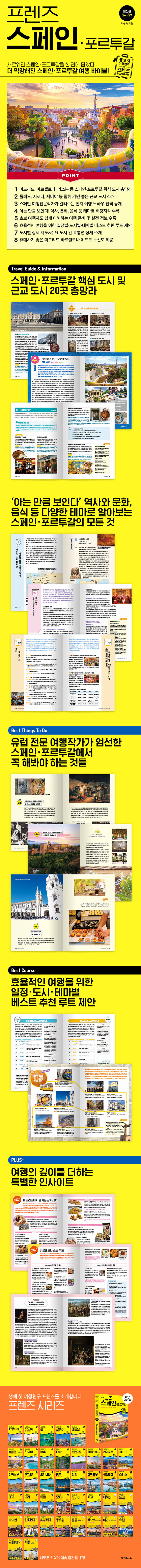 ÀÌ Ã¥¿¡¼´Â ½ºÆäÀΰú Æ÷¸£Åõ°¥ÀÇ ¿ª»ç¿Í Áö¸®, ±×µéÀÇ ¹®È À̾߱⸦ ÅëÇØ ¿Ö ÀÌ ³ª¶ó¿¡¼´Â °ÇÃàÀÌ ¹ß´ÞÇß°í Çöó¸æÄÚ¶ó´Â ÃãÀ» Ã߱⠽ÃÀÛÇß´ÂÁö, ¿Ö ½ºÆäÀÎÀÇ µµ½Ã ±×¶ó³ª´Ù¿¡´Â À̽½¶÷ ¾ç½ÄÀÇ °ÇÃ๰ÀÌ ÀÚ¸®ÇÏ´ÂÁö, ½ºÆäÀο¡¼´Â ¿Ö ¡®Å¸ÆÄ½º¡¯¶ó´Â À½½Ä ¹®È°¡ ¹ß´ÞÇß´ÂÁö ¿©Çà ¸í¼Ò¿¡ ´ã±ä ¿ª»çÀûÀÎ À¯·¡¿Í Àǹ̸¦ ¼Ò°³ÇÑ´Ù. ¡´ÇÁ·»Áî ½ºÆäÀÎÆ÷¸£Åõ°¥¡µÀº ´çÀå ¿©ÇàÀ» ¶°³ªÁö ¾Ê´õ¶óµµ, ¿©ÇàÀ» ´Ù³à¿Í¼µµ µÎ°í µÎ°í ÀÐ°í ½ÍÀº ¼ÒÀå°¡Ä¡ ÀÖ´Â °¡À̵åºÏÀÌ´Ù. ¡´ÇÁ·»Áî ½ºÆäÀÎÆ÷¸£Åõ°¥¡µ°ú ÇÔ²² ¶ó¸é ´Ü¼øÇÑ °ü±¤ÀÌ ¾Æ´Ñ ¡®ÀÇ¹Ì ÀÖ´Â ¿©Ç࡯ÀÌ µÉ °ÍÀÌ´Ù.